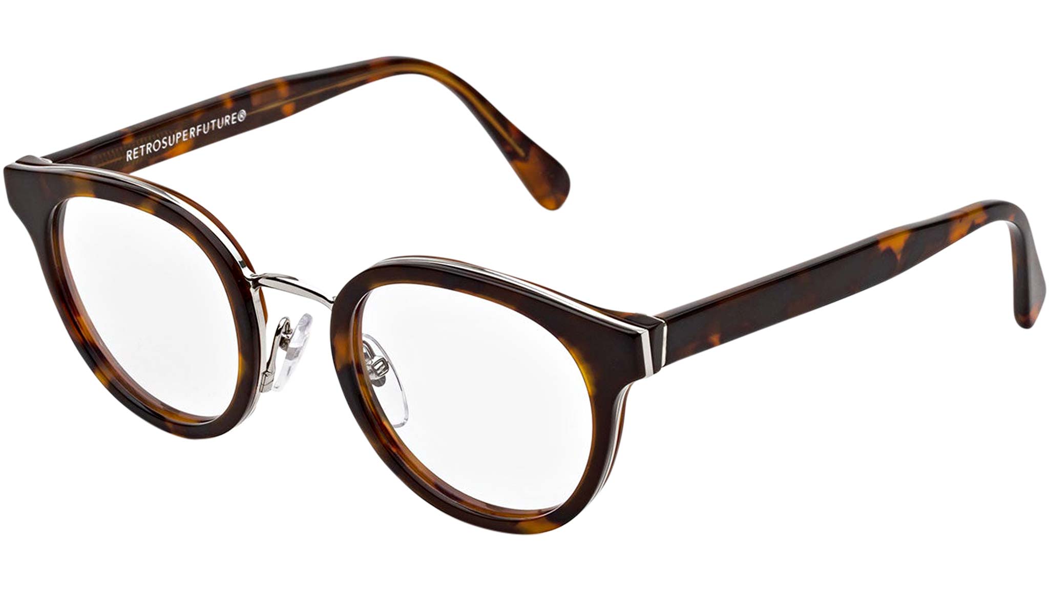 Retrosuperfuture this model presents a rich combination of materials and finishes, without sacrificing lightness and wearability. This rounded frame is composed of three different layers of material—a metallic core, light havana and classic havana acetates—that are thin yet add sturdiness to the frame. Prescription lenses not included.