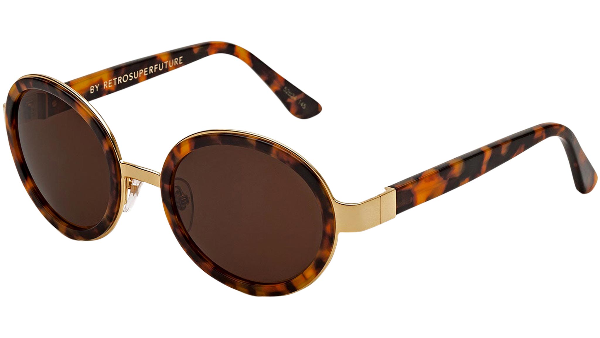 Retrosuperfuture sunglasses model Santa Spotted. Sizes: R Lens Width: 52 mm. Frame Front: 0 mm. Frame Side: 140 mm. Product Code Size R: 45A