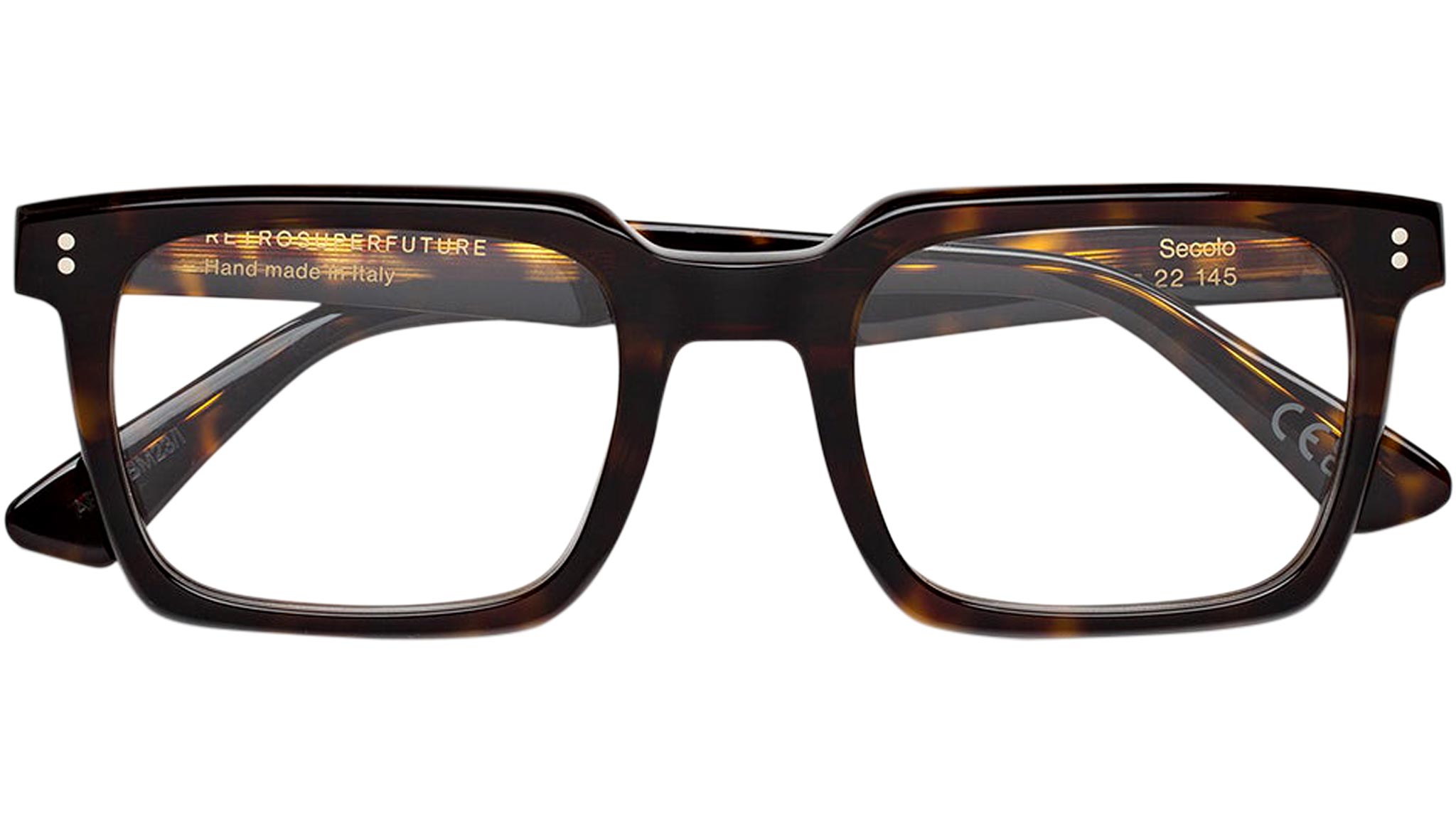Secolo is an angular, clean shape designed for everyday optical use. A familiar silhouette, Secolo features squared rims with wide lenses for comfortable daily use. Its protruding temple tips feature two metal studs, while the lowered nose-bridge references classic vintage pieces. This version comes in a vibrant 3627 Havana acetate. Sizes: R Lens Width: 51 mm. Frame Front: Frame Side: 145 mm. Product Code Size R: AF7
