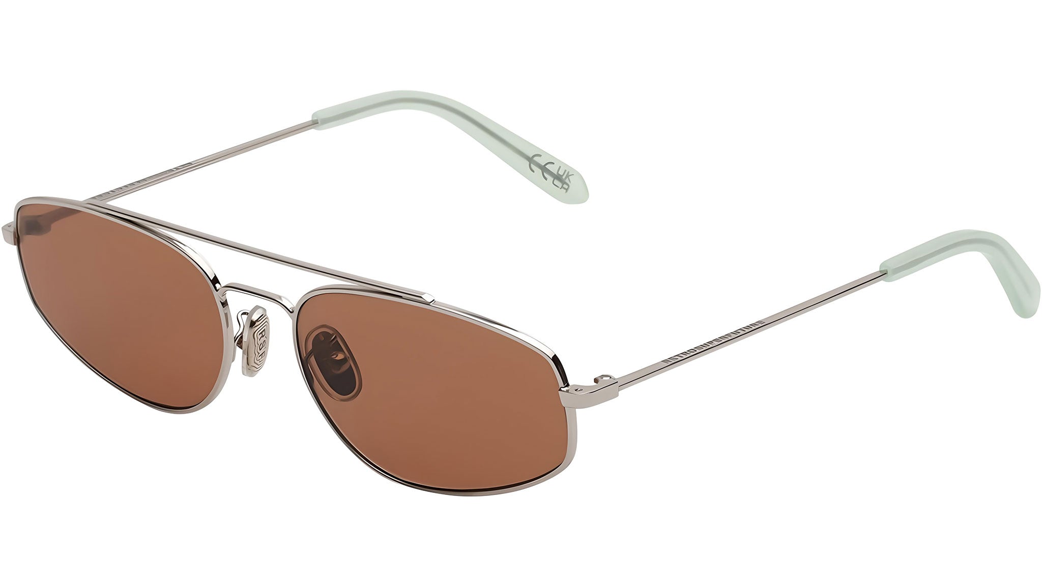 Tema is a determined, sharp and innovative silhouette that pushes the aesthetics of early-2000s minimalism. Characterized by a light yet sturdy metal structure, long double bridge and low-riding wide lenses, this is a cutting-edge piece of eyewear. This version of the Tema features elegant and classic finish with silver metal galvanic and sophisticated bordeaux lenses juxtaposed with a playful turquoise acetate on the temple tips. Sizes: R. Lens Width: 59 mm. Frame Front: 0 mm. Frame Side: 140 mm. Product Code Size R: X4G.