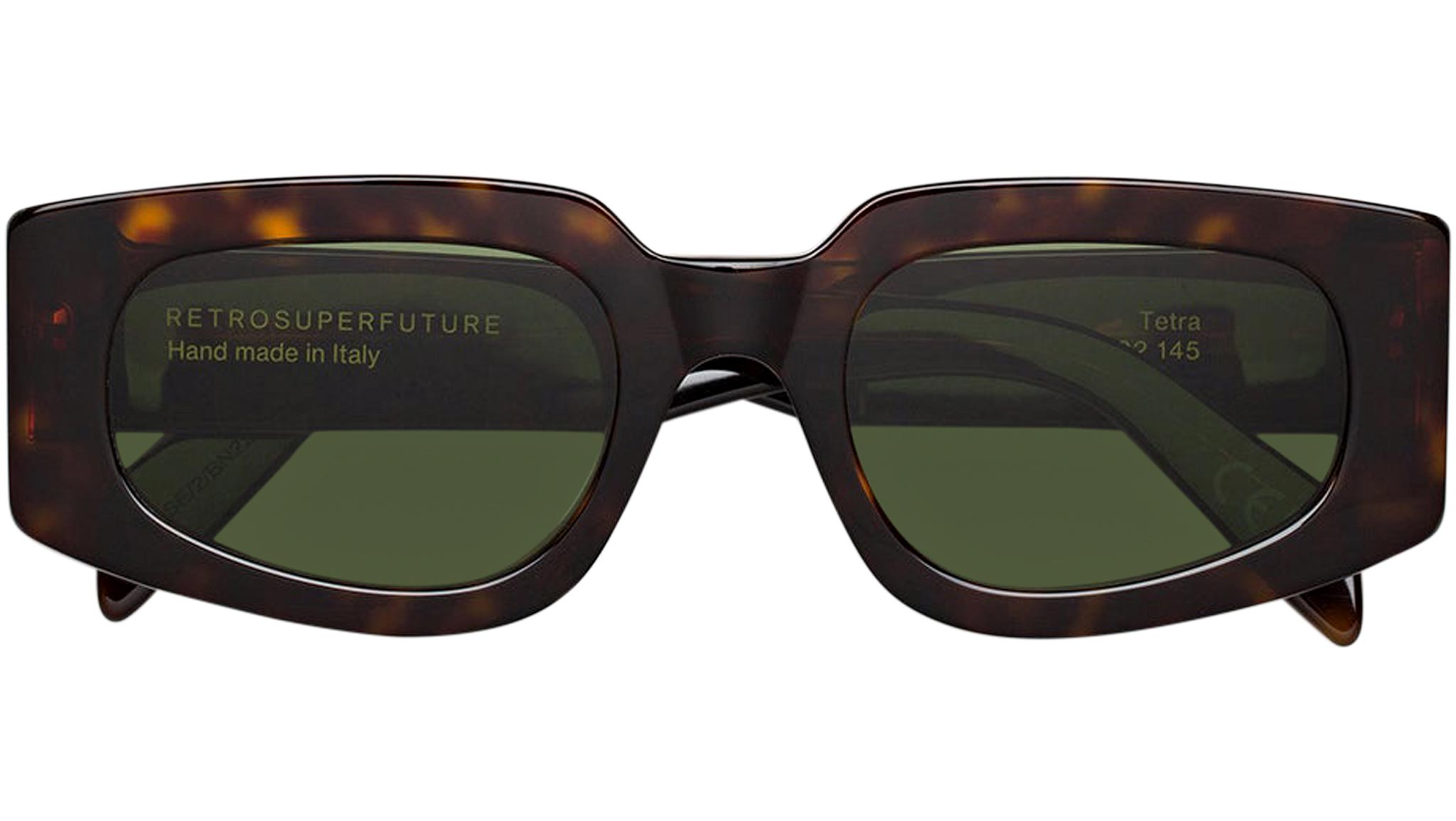 Tetra is a signature RSF frame: a sturdy, oversized silhouette with a distinct street edge. With thick rims and wide oval lenses, Tetra balances timeless classicism with modern, sharp features. Inspired by 1990s references, Tetra captures the perfect blend of understated elegance and raw edginess for an effortless everyday style. This version comes in an elegant dark Havana acetate and bottle green lenses. Sizes: Lens Width: 53 mm. Frame Front: Frame Side: 145 mm.