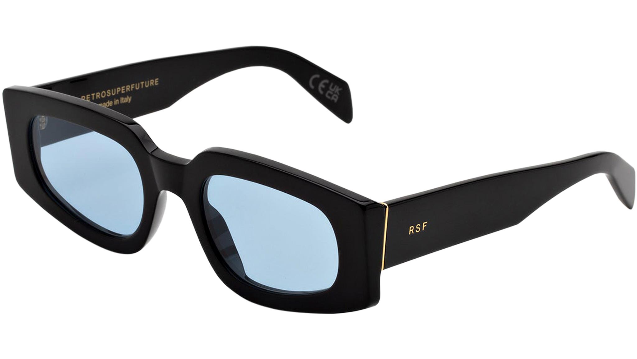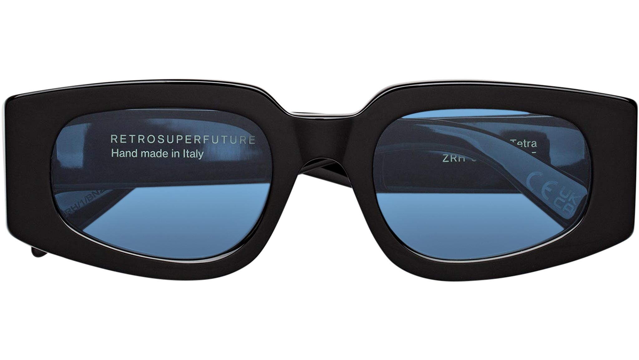 Tetra is a signature RSF frame: a sturdy, oversized silhouette with a distinct street edge. With thick rims and wide oval lenses, Tetra balances timeless classicism with modern, sharp features. Inspired by 1990s references, Tetra captures the perfect blend of understated elegance and raw edginess for an effortless everyday style. This version comes in a timeless shiny black acetate and bold blue lens. Sizes: Lens Width: 53 mm. Frame Front: Frame Side: 145 mm.