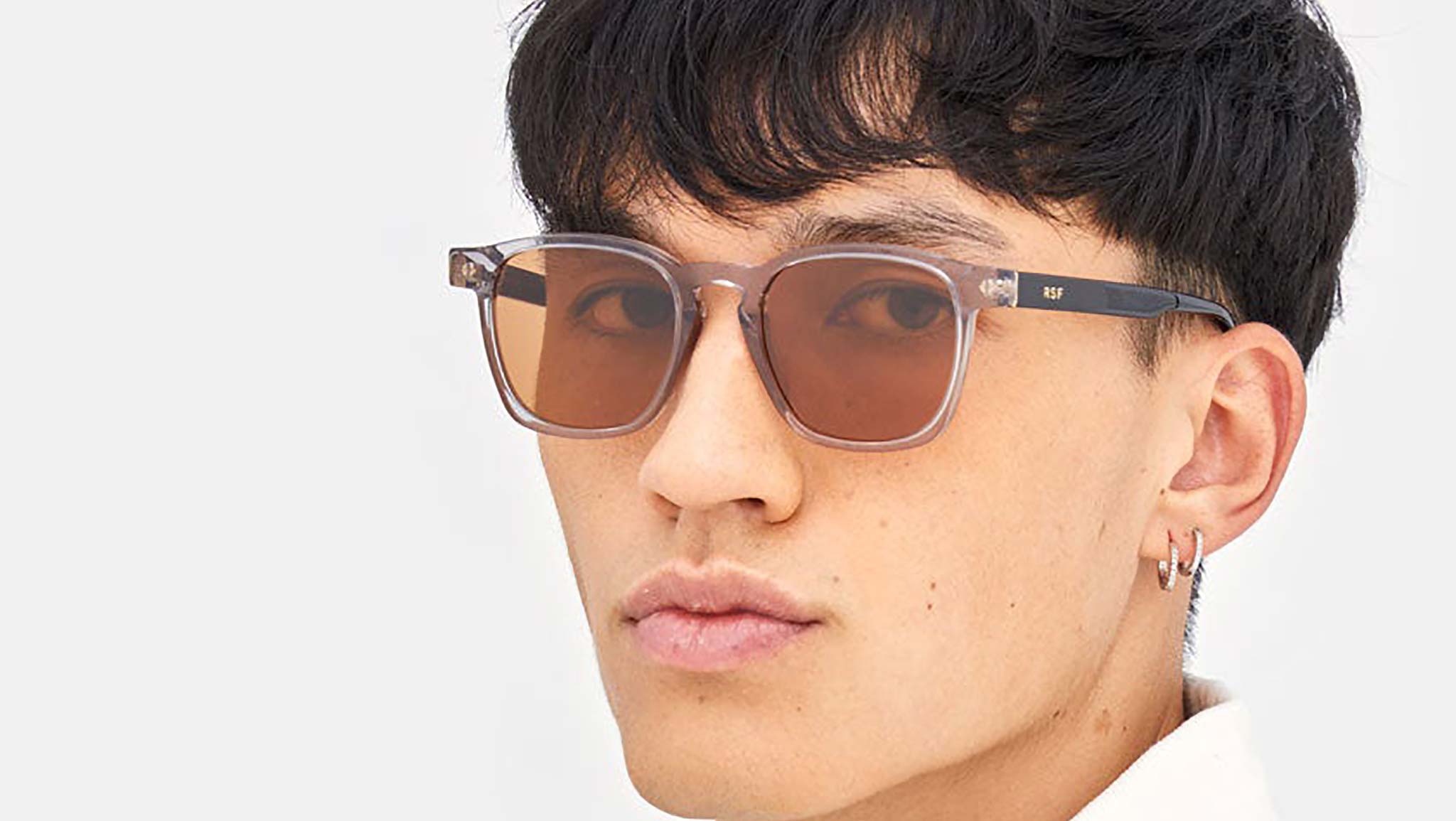 Unico is an essential everyday silhouette, the expression of a timeless staple without putting aside identity and character. A familiar shape, Unico evokes comforting vintage traits, such from different eras, refreshed and updated for a contemporary aesthetic. The shape features clean, polished lines and well-balanced geometries as a testimony to the exceptional craftsmanship of RSF design. This version matches an elegant grey crystal acetate with rich brown lenses and sturdy black temples. Sizes: R Lens Width: 50 mm. Frame Front: 142 mm. Frame Side: 145 mm. Product Code Size R: M4O