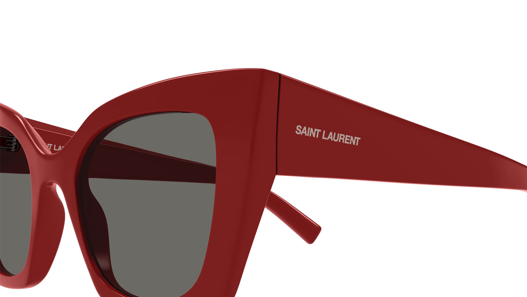 Occhiali da sole Saint Laurent SL 552 FF43K042 donna con montatura cat eye in inietatto rosso e lenti grigio tinta unita. Linea: New Wave. Codice modello: SL 552. Codice colore: FF43K042. Made in Italy. Rivenditore autorizzato Saint Laurent online. Gli occhiali vengono consegnati con custodia e accessori originali e sono coperti dalla garanzia ufficiale di 12 mesi del produttore.