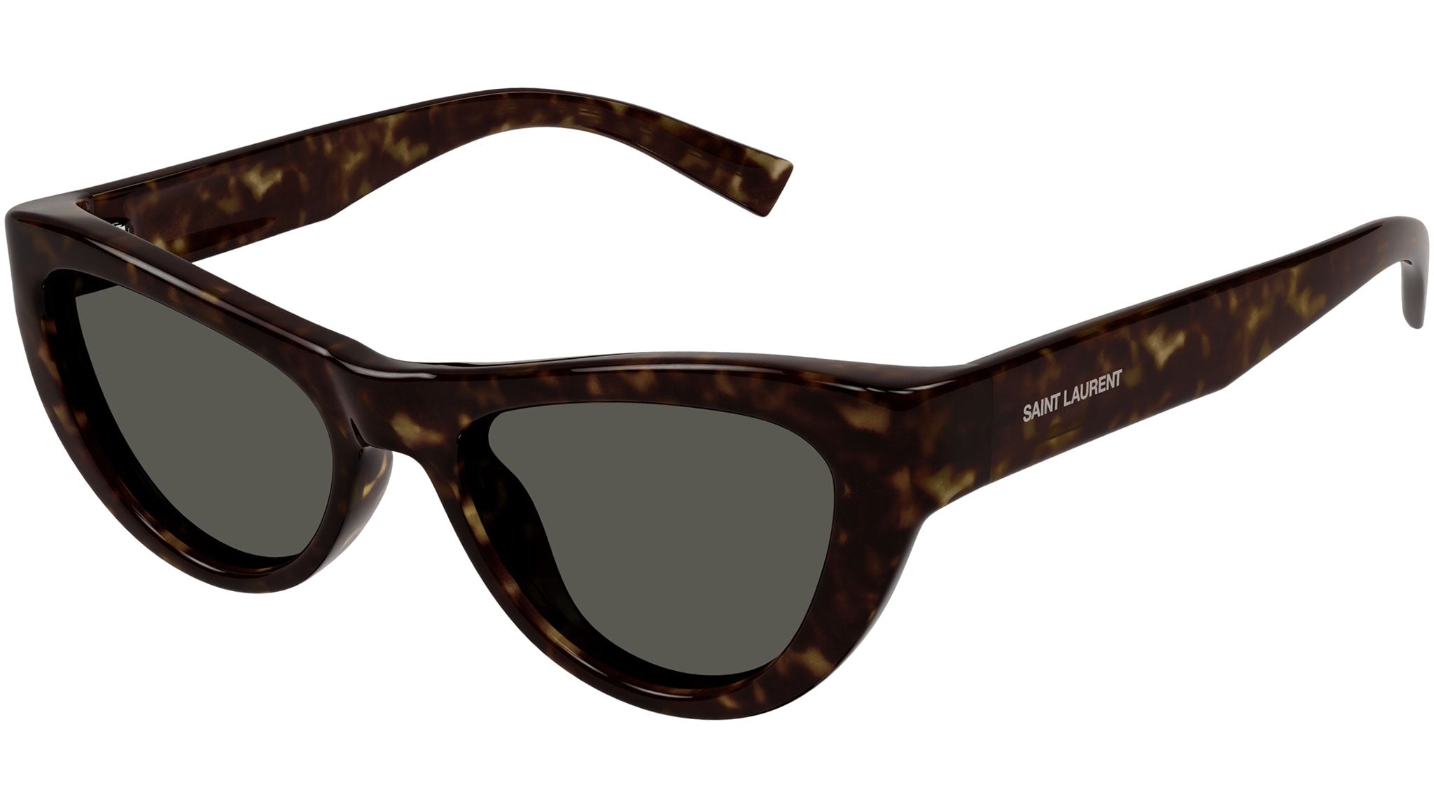 Occhiali da sole Saint Laurent SL 676 003 donna con montatura cat eye in inietatto avana scuro lucido e lenti grigio tinta unita. Linea: New Wave. Codice modello: SL 676. Codice colore: 003. Made in Italy. Rivenditore autorizzato Saint Laurent online. Gli occhiali vengono consegnati con custodia e accessori originali e sono coperti dalla garanzia ufficiale di 12 mesi del produttore.