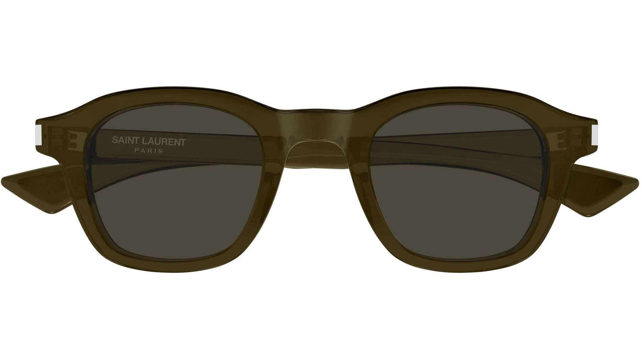 Occhiali da sole Saint Laurent SL 880 004 unisex con montatura ovale in acetato riciclato kaki trasparente lucido e lenti grigio tinta unita. Linea: Corner Angle. Codice modello: SL 880. Codice colore: 004. Made in Japan. Rivenditore autorizzato Saint Laurent online. Gli occhiali vengono consegnati con custodia e accessori originali e sono coperti dalla garanzia ufficiale di 12 mesi del produttore.