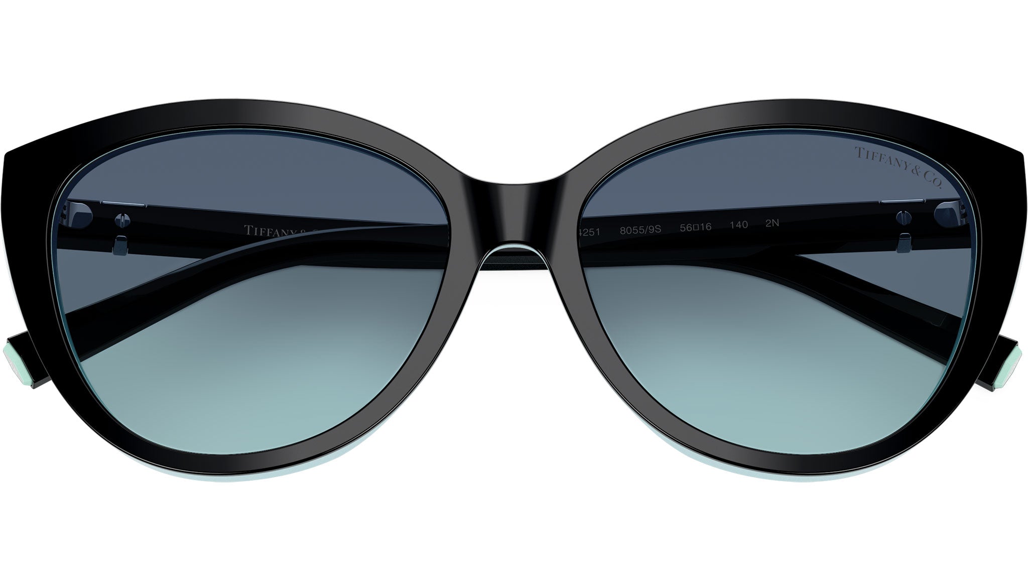 Occhiali da sole Tiffany donna modello TF4251 80559S con montatura cat eye in acetato nero su blu Tiffany e lenti in bio poliammide blu azzurro sfumato base 4. Vestibilità a ponte alto. Linea: Icons. Codice Brand: 0TF4251. Codice colore: 80559S. Rivenditore autorizzato online Tiffany Eyewear. Ogni prodotto Tiffany viene consegnato con astuccio originale e accessori ed è coperto da garanzia del produttore di 12 mesi.