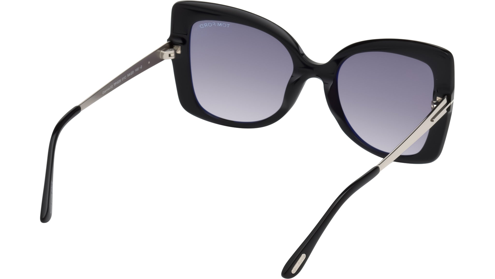 Occhiali da sole Tom Ford donna modello Gianna-02 FT0609 in acetato nero lucido / rutenio con lenti color grigio sfumato. Codice brand: 0609. Codice colore: 01C. Rivenditore autorizzato Tom Ford online. Gli occhiali vengono consegnati con custodia e accessori originali e sono coperti da garanzia standard di 12 mesi del produttore.