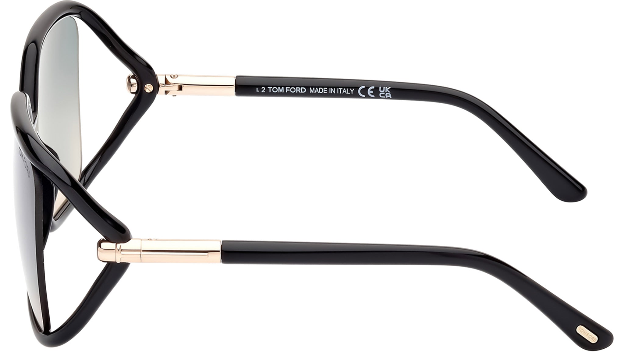Occhiali da sole Tom Ford donna modello Solange-02 FT1089 in inietatto nero lucido con lenti color verde sfumato. Codice brand: 1089. Codice colore: 01P. Rivenditore autorizzato Tom Ford online. Gli occhiali vengono consegnati con custodia e accessori originali e sono coperti da garanzia standard di 12 mesi del produttore.