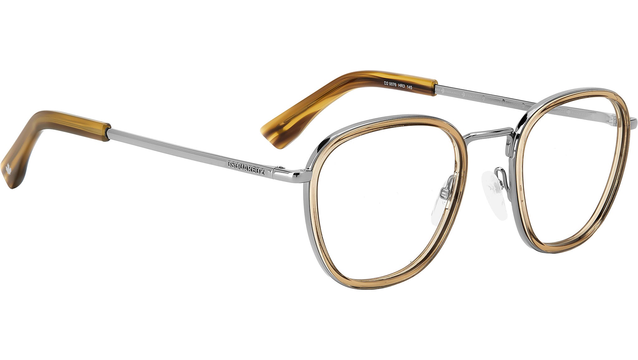 Occhiali da vista Dsquared2 modello D2 0076 codice colore HR3 beige corno con lenti demo Il frontale in leggero metallo e acetato di questi occhiali da vista DSQUARED2 calza perfettamente grazie ai comodi naselli personalizzati dall’iconica foglia d’acero. Le aste arrotondate sono griffate con il logo in linea che decora il lato interno e con il logo DSQUARED2 in alto rilievo sul lato esterno. I terminali in acetato con la caratteristica foglia d’acero completano un occhiale da uomo senza eguali. Rivenditore autorizzato online Dsquared2.