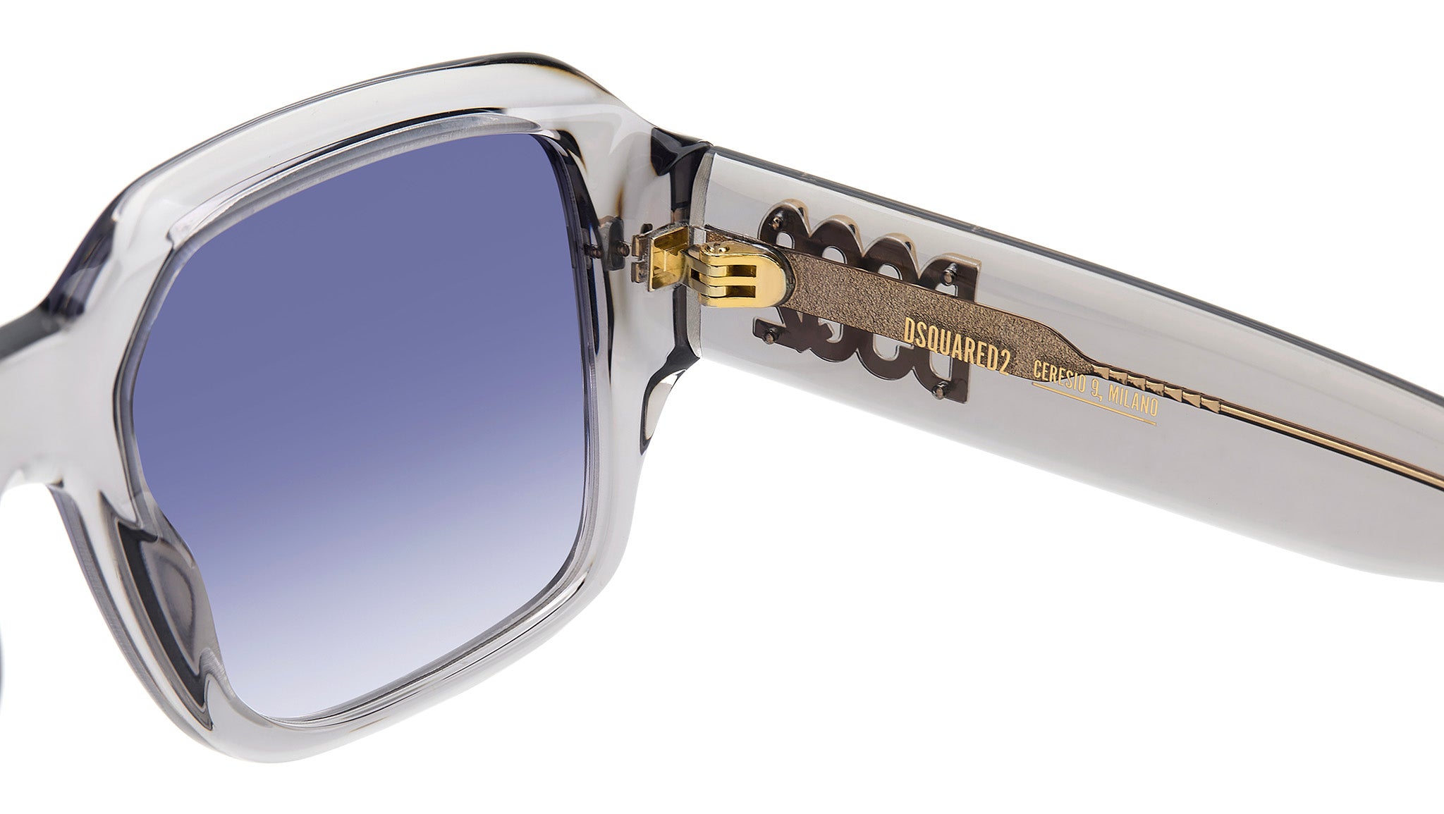 Occhiali da sole Dsquared2 modello D2 0106/S codice colore KB7 in acetato grigio con lenti in CR-39 blu scuro sfumato. Glamour e coolness sono componenti essenziali dell’universo DSQUARED2 e di questi occhiali da sole per uomo. I profili in acetato sono audaci, generosi e sfaccettati, e sorprendentemente leggeri sul volto. A rendere leggendario il modello ci pensano i dettagli identificativi del brand: i rivetti metallici sul frontale, il maxi logo DSQ2 in rilievo, la dicitura CERESIO 9, MILANO sul lato interno delle aste e la foglia d’acero sui terminali. Rivenditore autorizzato online Dsquared2.