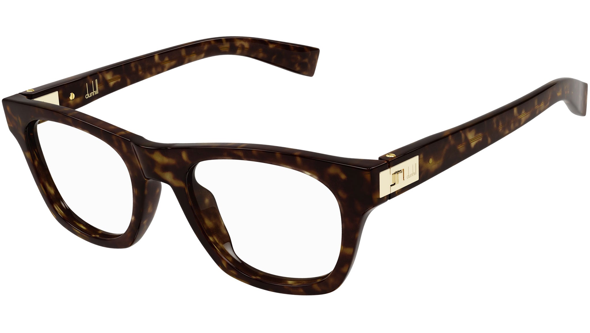 Occhiali da vista Dunhill modello DU0090O linea Eyewear forma rettangolare in acetato riciclato, codice colore 002 tartaruga scuro lucido con aste color tartaruga e lenti demo.