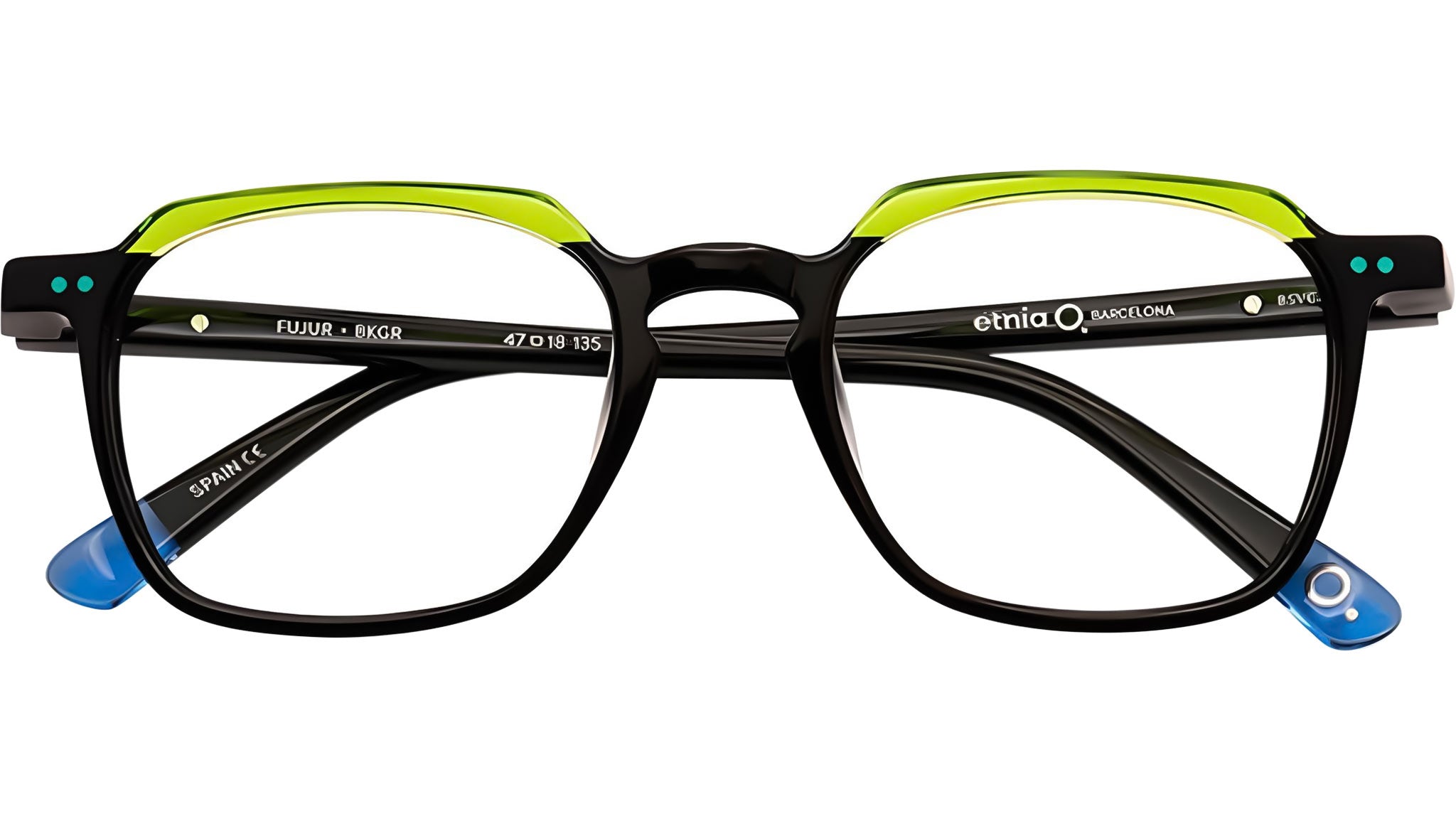 Occhiali da vista Etnia Barcelona Fujur in acetato nero / verde con lenti demo. Codice modello: FUJUR 47O. Codice colore: BKGR. Rivenditore autorizzato online Etnia Barcelona. Gli occhiali vengono forniti con custodia e accessori originali e sono coperti dalla garanzia standard del produttore di 12 mesi.
