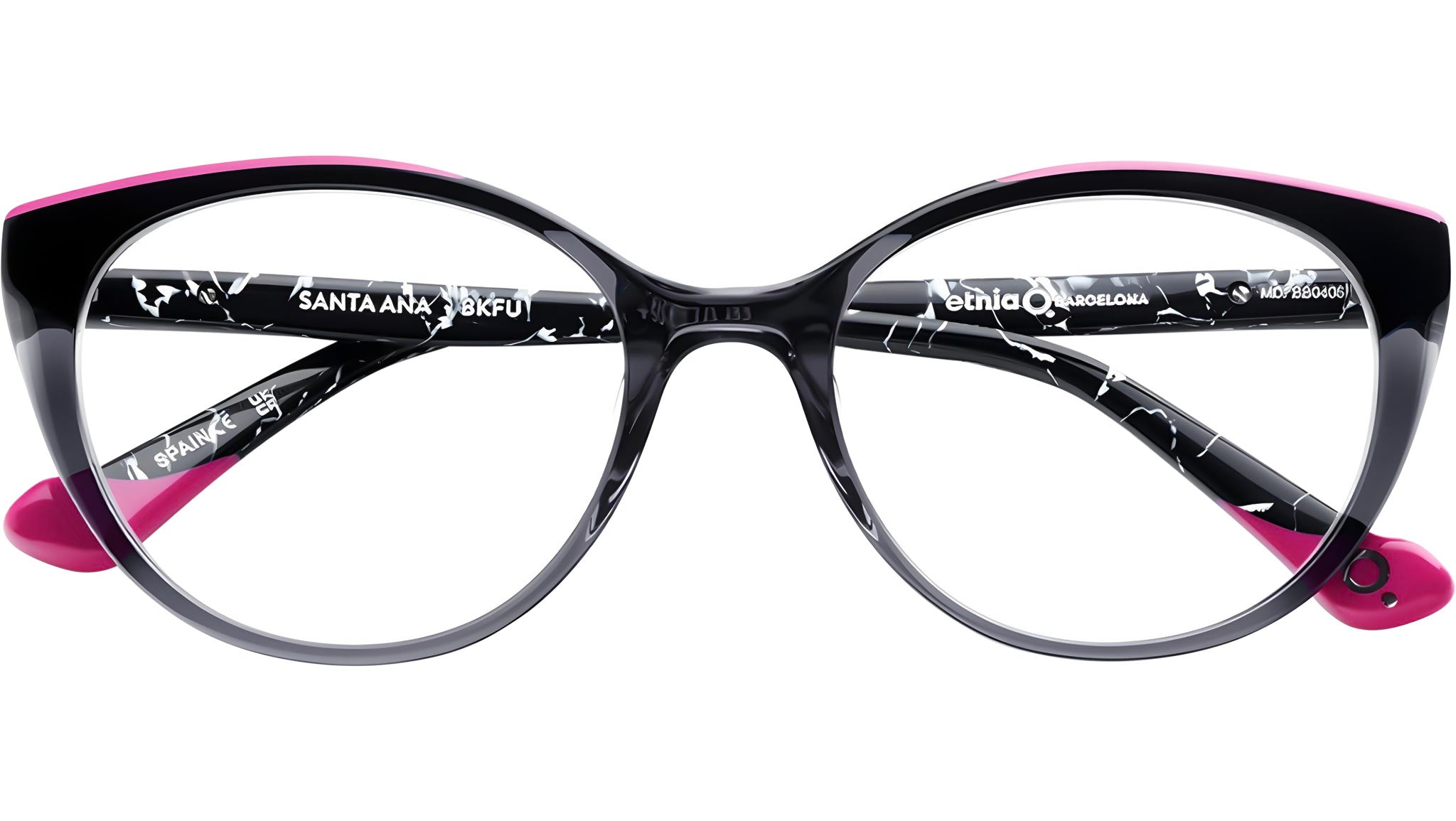 Occhiali da vista Etnia Barcelona Santa Ana in acetato nero / fucsia con lenti demo. Codice modello: SANTA ANA 50O. Codice colore: BKFU. Rivenditore autorizzato online Etnia Barcelona. Gli occhiali vengono forniti con custodia e accessori originali e sono coperti dalla garanzia standard del produttore di 12 mesi.