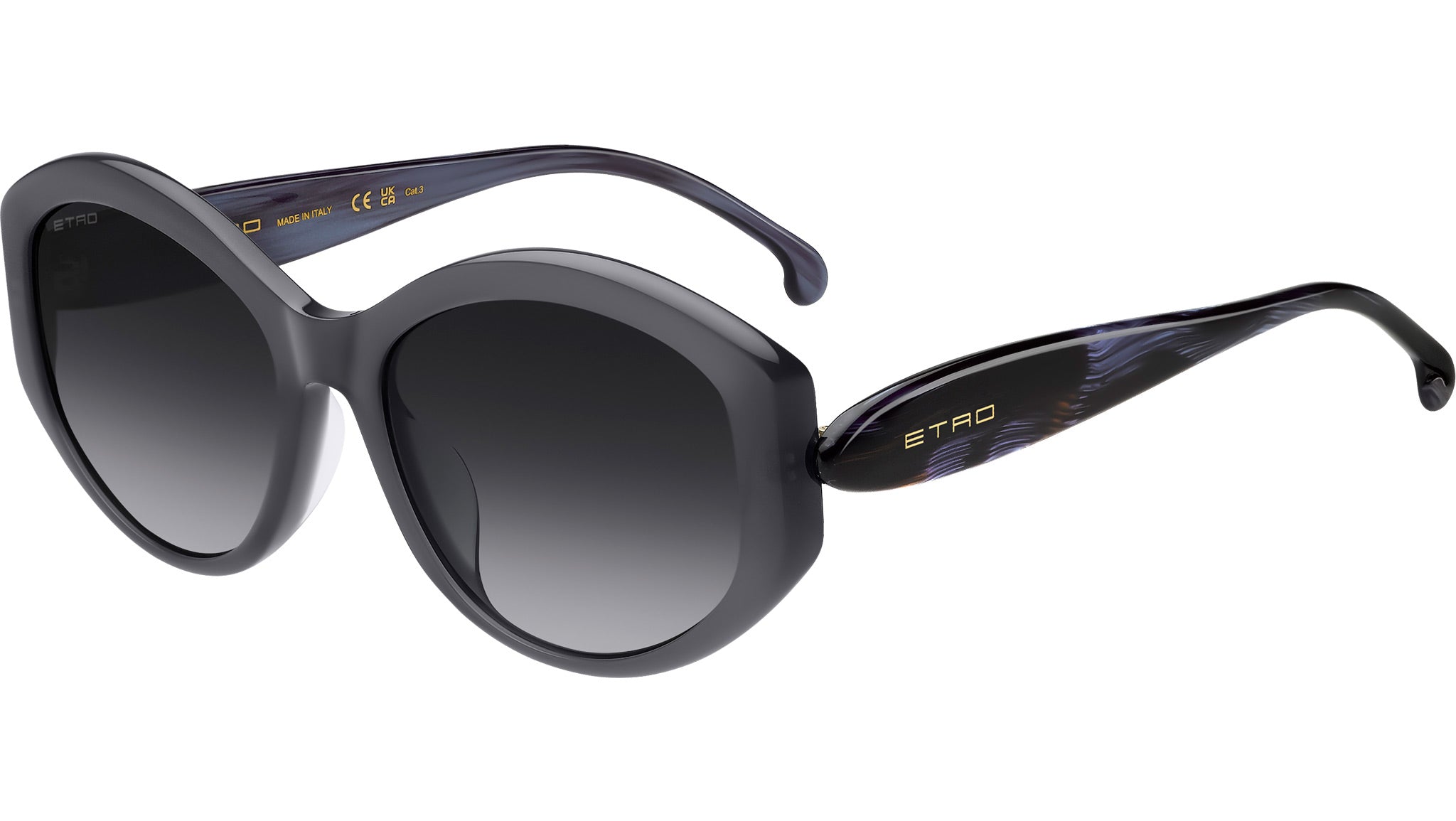 Occhiali da sole Etro 0086/F/S KB7 9O donna con montatura ovale in acetato grigio e lenti in CR-39 grigio scuro sfumato. Emblema dello spirito ETRO, la collezione eyewear 'Etropaisley' celebra il motivo iconico del brand in tutte le sue forme e varianti cromatiche. Questi occhiali da sole richiamano un'opera d'arte, con una montatura geometrica dalle curve morbide e aste ondulate che evocano la silhouette del celebre motivo Paisley. Proporzioni delicate e combinazioni cromatiche audaci, incluse irresistibili varianti bicolore, definiscono ogni modello. Il logo ETRO e i terminali distintivi completano il design con un tocco esclusivo. Linea: Etromania. Codice modello: 207826. Codice colore: KB7 9O. Rivenditore autorizzato Etro online. Gli occhiali vengono consegnati con custodia e accessori originali e sono coperti dalla garanzia ufficiale di 12 mesi del produttore.