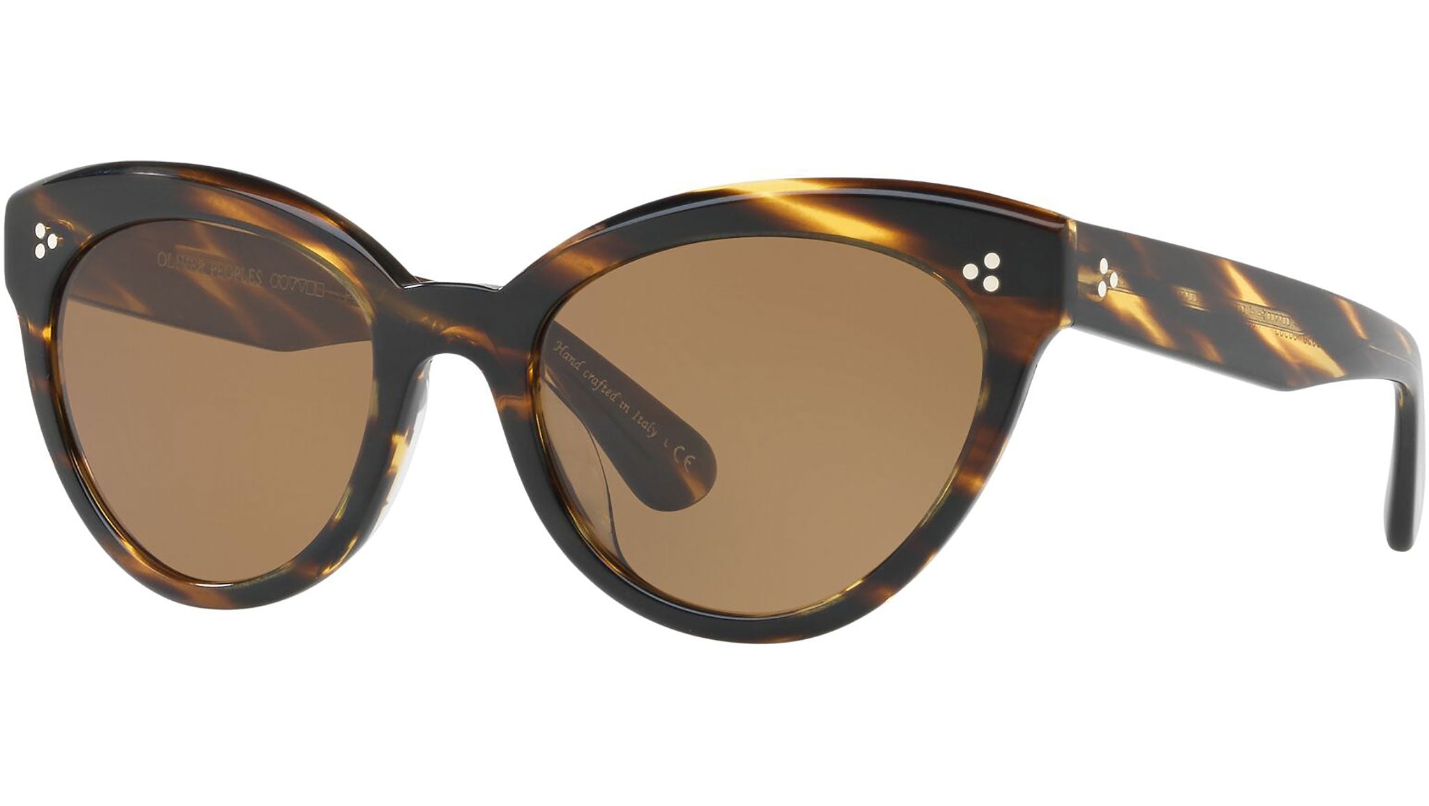 This glamorous sunglass is crafted of bold acetate in an upswept cat-eye shape and features tri-pin details on the frame front and hinge.
