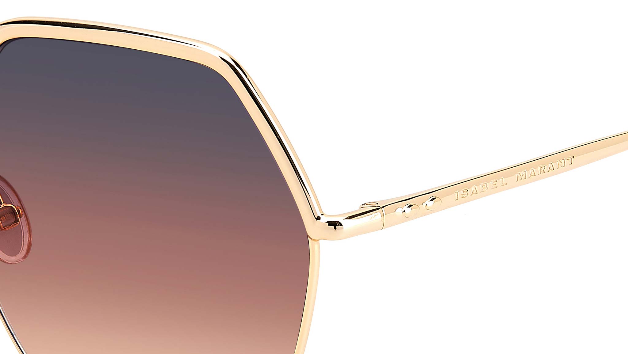 Occhiali da sole Isabel Marant modello IM 0119/S codice colore 000 FF Rose Gold con lenti demo. Eleganza quotidiana con l'eyewear Wild Metal di Isabel Marant. Le silhouette della collezione si ispirano al carattere easy ed essenziale del brand, offrendo una selezione di montature in metallo dalle linee leggere e minimali. Questi occhiali da sole sfoggiano una forma esagonale di forte impatto, con dettagli tridimensionali a forma di foglia sulle aste. Anche i terminali richiamano questo motivo iconico. Proposti con lenti sfumate nei toni del tramonto e completati dal logo inciso al laser.