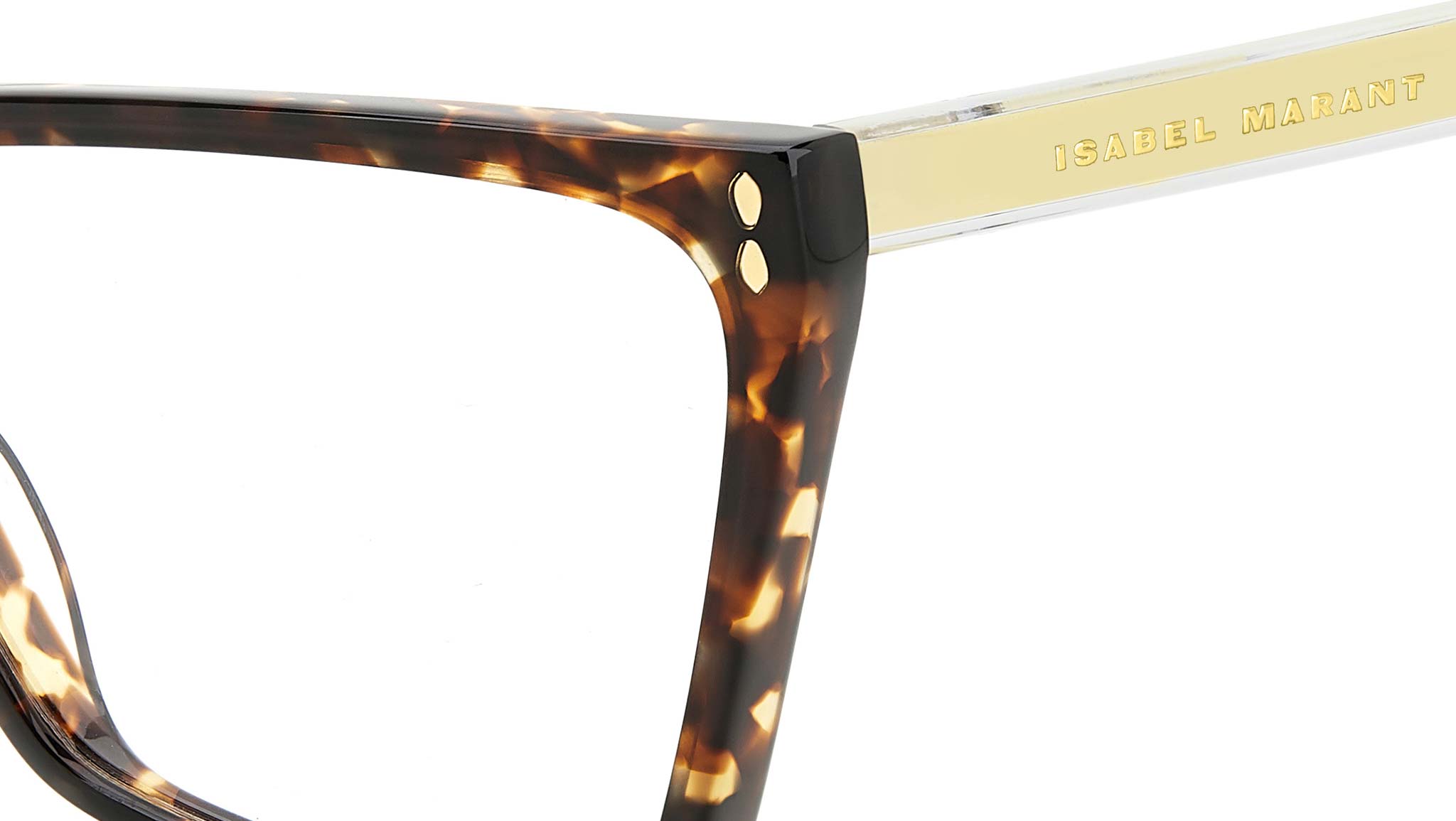 Occhiali da vista Isabel Marant modello IM 0167 codice colore 908 Havana con lenti demo. Audaci, inconfondibili e particolarmente leggeri: gli occhiali della collezione The New di Isabel Marant presentano un design dal volume ultra piatto in nuance femminili ispirate alle collezioni prêt-à-porter e agli accessori del brand. Queste montature da vista in acetato presentano una moderna silhouette cat-eye geometrica caratterizzata da un esclusivo dettaglio in metallo sulla cerniera. I terminali e i rivetti in metallo a forma di foglia evocano il distintivo dettaglio Leaf di Isabel Marant.