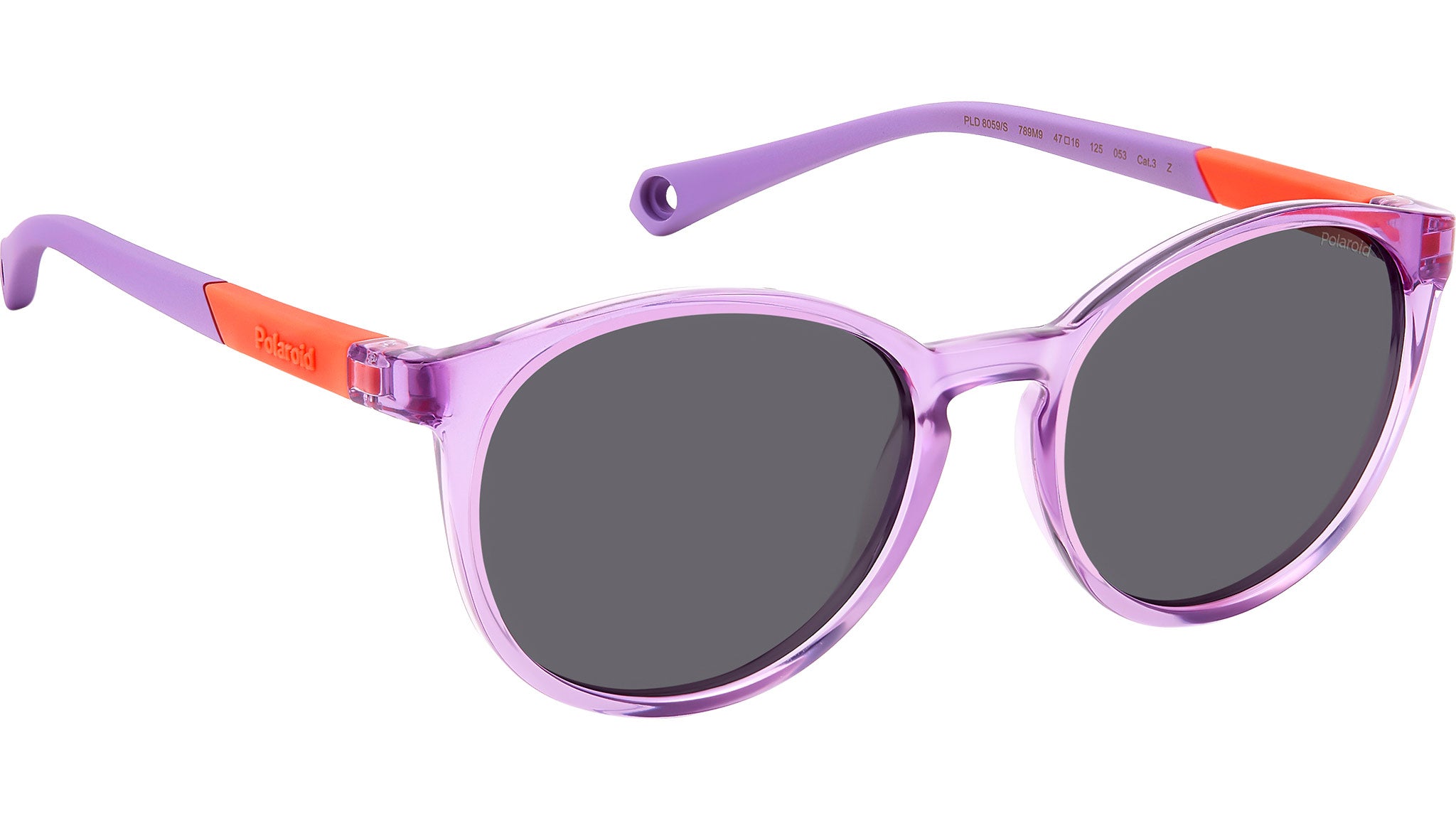 Occhiali da sole Polaroid Kids PLD 8059/S 789 M9 junior con montatura in policarbonato lilla e lenti grigio polarizzate. Occhiali da sole Polaroid per bambini e bambine tra i 4 e i 6 anni di età. Irresistibile il frontale pantos con ponte a chiave, spiritose le aste bi-color. La struttura in policarbonato resiste a urti e graffi, perfetta per muoversi in libertà. Le aste gommate sono morbide e stabili sui piccoli volti, dotate di fori a cui agganciare il cordino regolabile acquistabile separatamente. Disponibile in due calibri. Linea: Kids. Codice modello: 206851. Codice colore: 789 M9. Rivenditore autorizzato Polaroid Kids online. Gli occhiali vengono consegnati con custodia e accessori originali e sono coperti dalla garanzia ufficiale di 12 mesi del produttore.