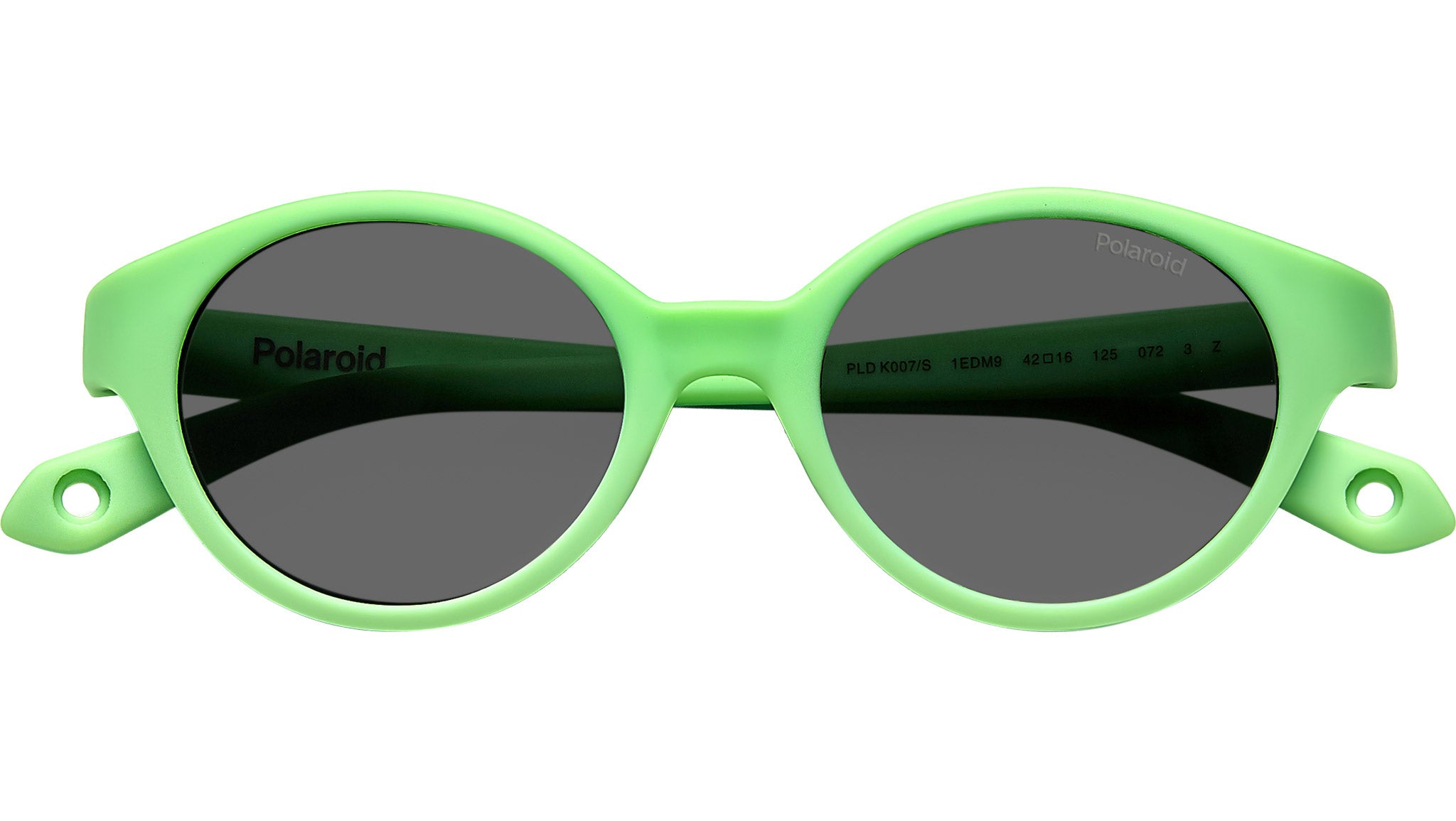 Occhiali da sole Polaroid Kids PLD K007/S 1ED M9 junior con montatura in plastica verde e lenti grigio polarizzate. Con un bel frontale tondeggiante e dalle tinte vivaci, questi occhiali da sole Polaroid Kids sono ideali tra i 4 e i 6 ani di età. Realizzati in gomma e con un comodo design avvolgente, hanno lenti polarizzate per proteggere dai raggi solari gli occhi dei bambini anche nei loro giochi all’aperto. Comodo è anche il dettaglio nei terminali, pensato per aggiungere il cordino elastico acquistabile separatamente. Linea: Kids. Codice modello: 205734. Codice colore: 1ED M9. Rivenditore autorizzato Polaroid Kids online. Gli occhiali vengono consegnati con custodia e accessori originali e sono coperti dalla garanzia ufficiale di 12 mesi del produttore.