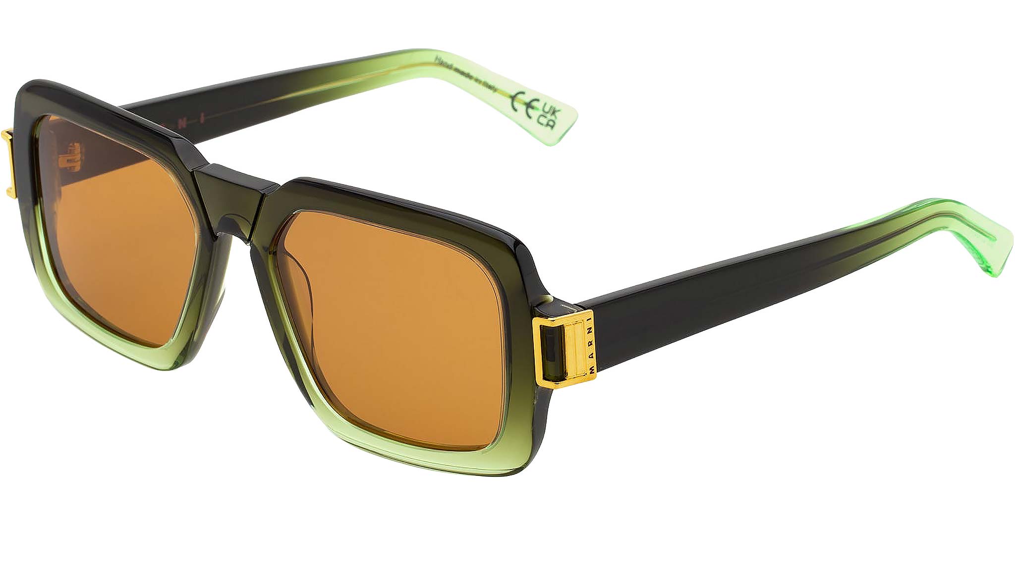 Designed exclusively for Marni, Zamalek is a stubbornly oversized silhouette inspired by the groovy 1970s aesthetics, with a touch of bold and experimental streetwear culture. The model features large squared lenses with a sturdy nose-bridge and thick acetate rims. Zamalek is equipped with a custom-designed metal décor on the temples that elevates this unique contemporary silhouette. This version comes in a fading grey and green acetate with sophisticated brown lenses. Sizes: R Lens Width: 54 mm. Frame Front: Frame Side: 145 mm. Product Code Size R: 1W8