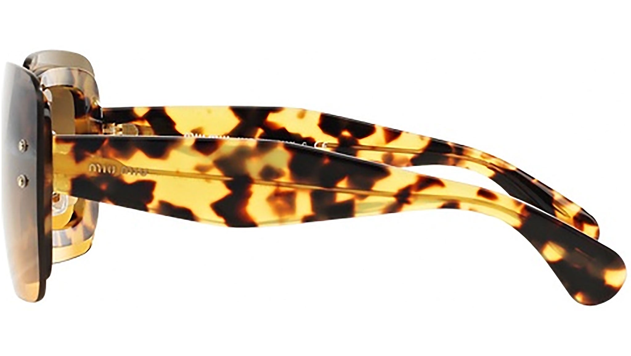 Occhiali da sole Miu Miu modello MU 02RS codice colore 7S00A3 con montatura color avana in acetato e lenti color arancione sfumato verde chiaro. Miu Miu offre creazioni uniche, in cui la costante ricerca stilistica si combina perfettamente con la maestria artigianale della lavorazione. Le silhouette femminili e sinuose delle montature sono espressione di una ricchezza dei dettagli che rispecchia pienamente i codici stilistici e l’indiscusso talento del brand nell’unire il design non convenzionale ad un romanticismo dai rimandi retrò.