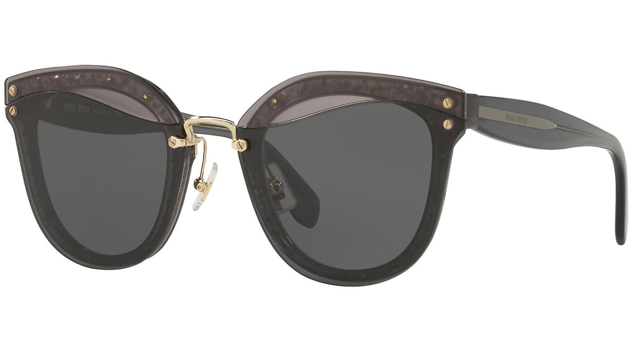 Occhiali da sole Miu Miu modello MU 70US variante colore UES5S0 grigio trasparente / glitter, con lenti color grigio. Miu Miu offre creazioni uniche, in cui la costante ricerca stilistica si combina perfettamente con la maestria artigianale della lavorazione. Le silhouette femminili e sinuose delle montature sono espressione di una ricchezza dei dettagli che rispecchia pienamente i codici stilistici e l’indiscusso talento del brand nell’unire il design non convenzionale ad un romanticismo dai rimandi retrò.