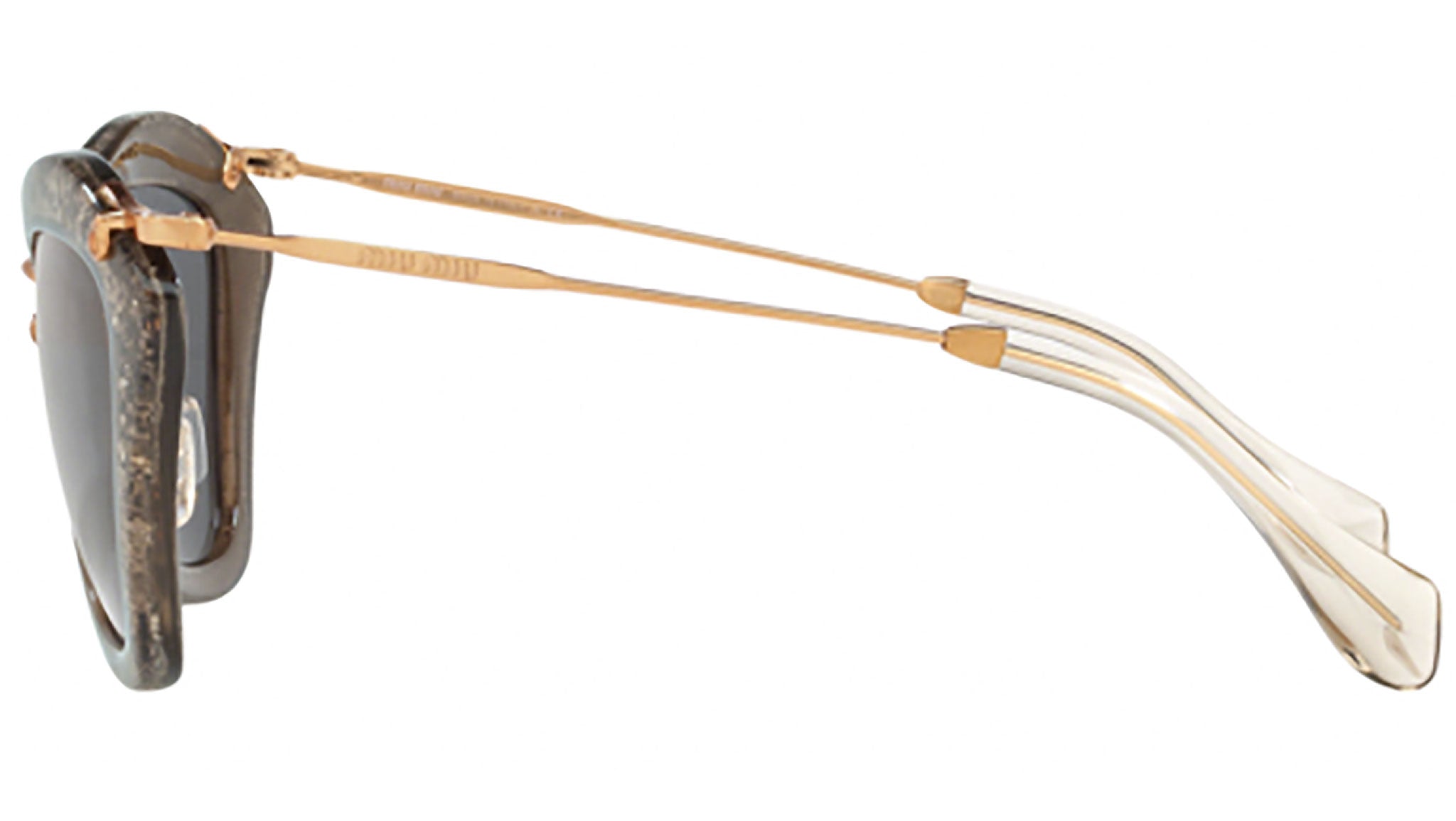Occhiali da sole Miu Miu modello MU 10NS codice colore IAH1A1 con montatura color fumo / argento brillante in acetato e lenti color grigio. Miu Miu offre creazioni uniche, in cui la costante ricerca stilistica si combina perfettamente con la maestria artigianale della lavorazione. Le silhouette femminili e sinuose delle montature sono espressione di una ricchezza dei dettagli che rispecchia pienamente i codici stilistici e l’indiscusso talento del brand nell’unire il design non convenzionale ad un romanticismo dai rimandi retrò.