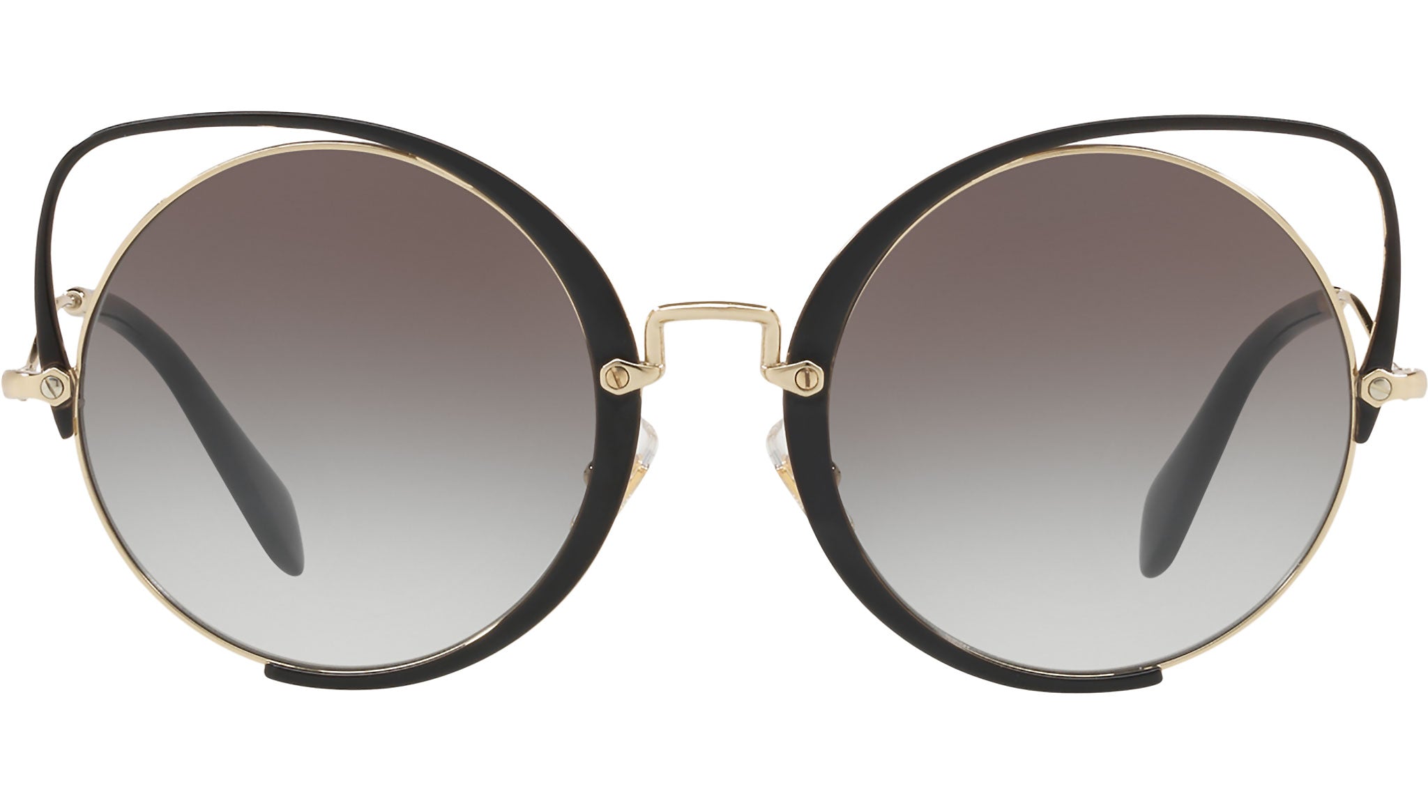Occhiali da sole Miu Miu modello MU 70US variante colore 1AB0A7 oro chiaro / nero, con lenti color grigio sfumato. Miu Miu offre creazioni uniche, in cui la costante ricerca stilistica si combina perfettamente con la maestria artigianale della lavorazione. Le silhouette femminili e sinuose delle montature sono espressione di una ricchezza dei dettagli che rispecchia pienamente i codici stilistici e l’indiscusso talento del brand nell’unire il design non convenzionale ad un romanticismo dai rimandi retrò.