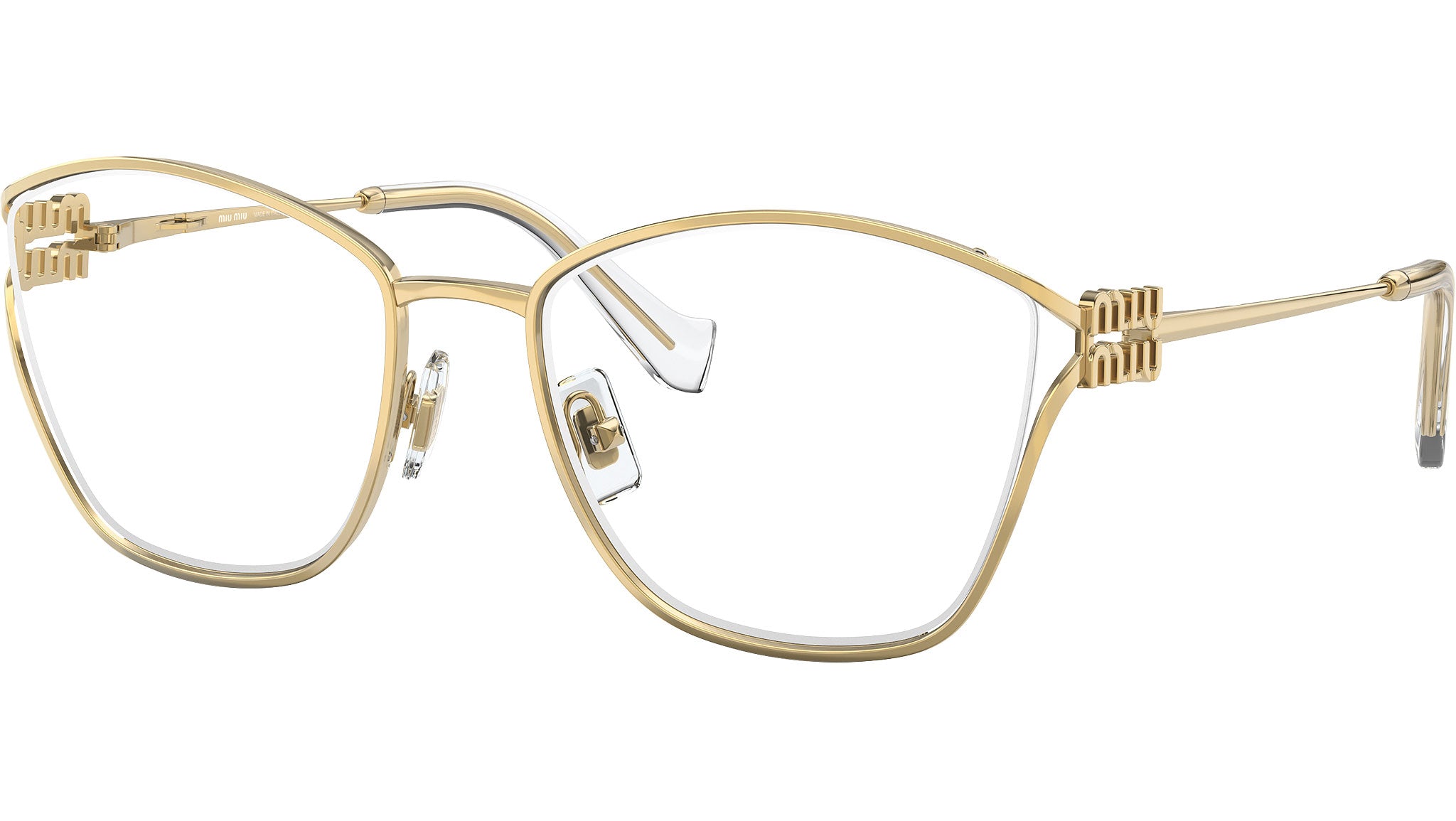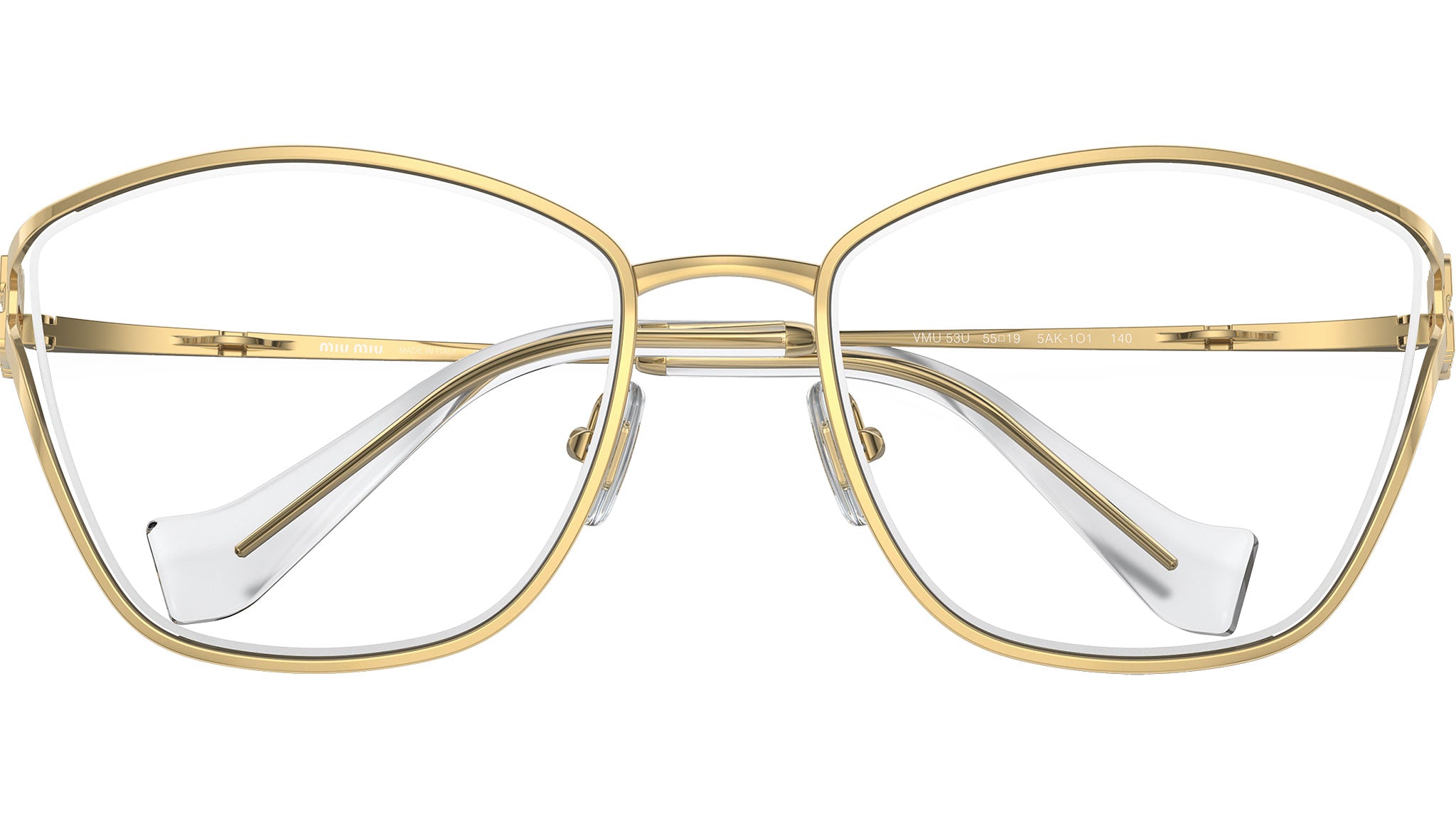 Occhiali da vista Miu Miu modello MU 01QV variante colore 5AK1O1 oro. Miu Miu offre creazioni uniche, in cui la costante ricerca stilistica si combina perfettamente con la maestria artigianale della lavorazione. Le silhouette femminili e sinuose delle montature sono espressione di una ricchezza dei dettagli che rispecchia pienamente i codici stilistici e l’indiscusso talento del brand nell’unire il design non convenzionale ad un romanticismo dai rimandi retrò.