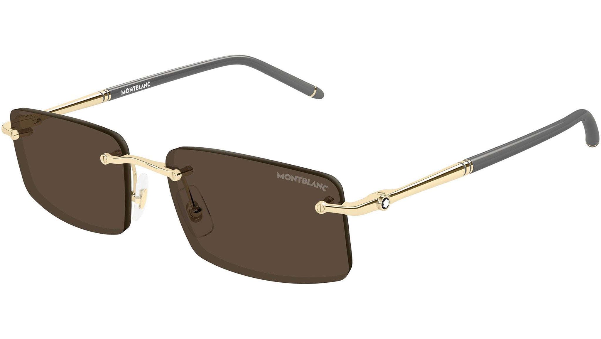 Occhiali da sole Montblanc MB0443S 005 uomo con montatura rettangolare in metallo oro chiaro lucido e lenti marrone tinta unita. Linea: Meisterstück. Codice modello: MB0443S. Codice colore: 005. Made in Japan. Rivenditore autorizzato Montblanc online. Gli occhiali vengono consegnati con custodia e accessori originali e sono coperti dalla garanzia ufficiale di 12 mesi del produttore.