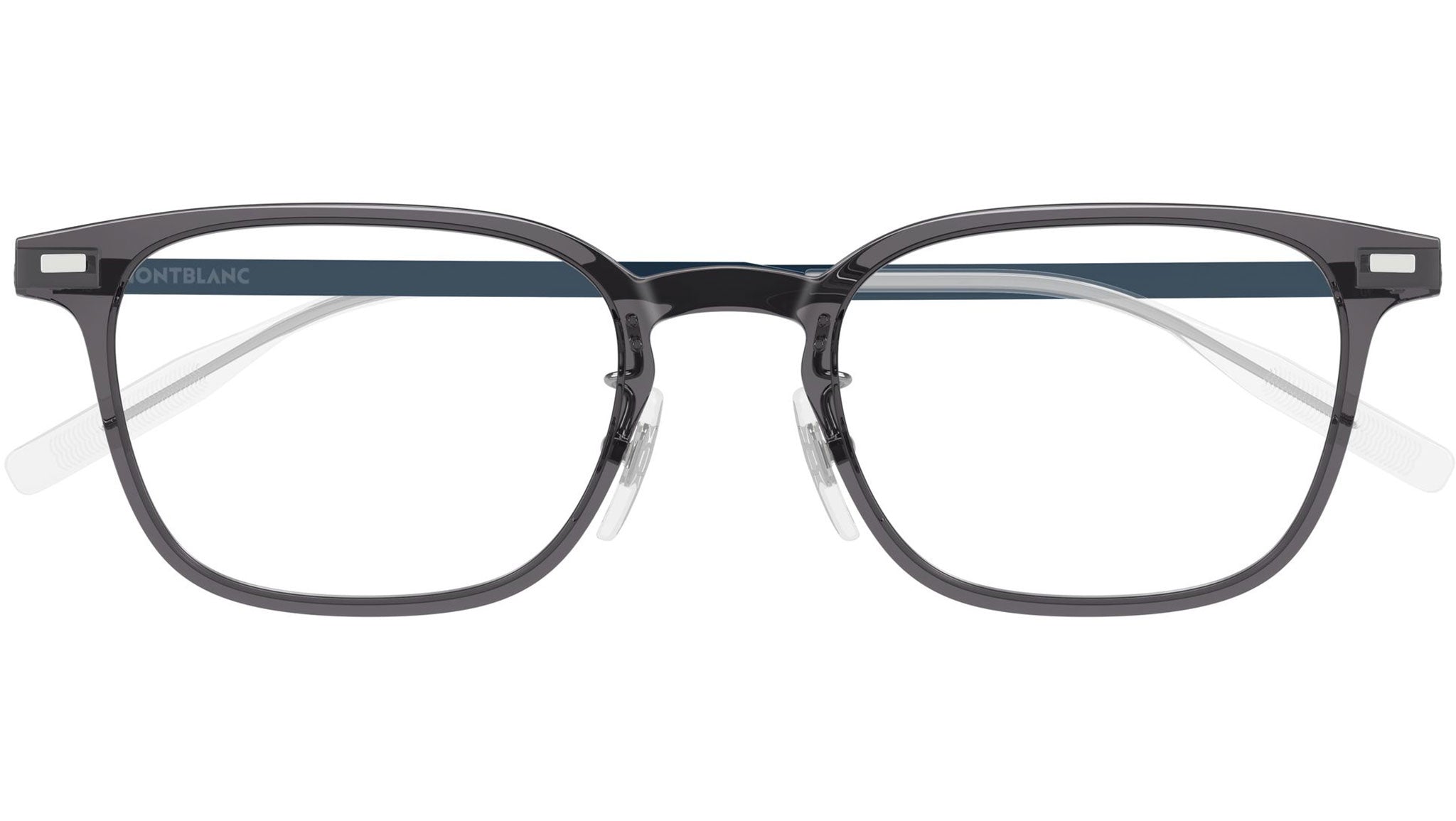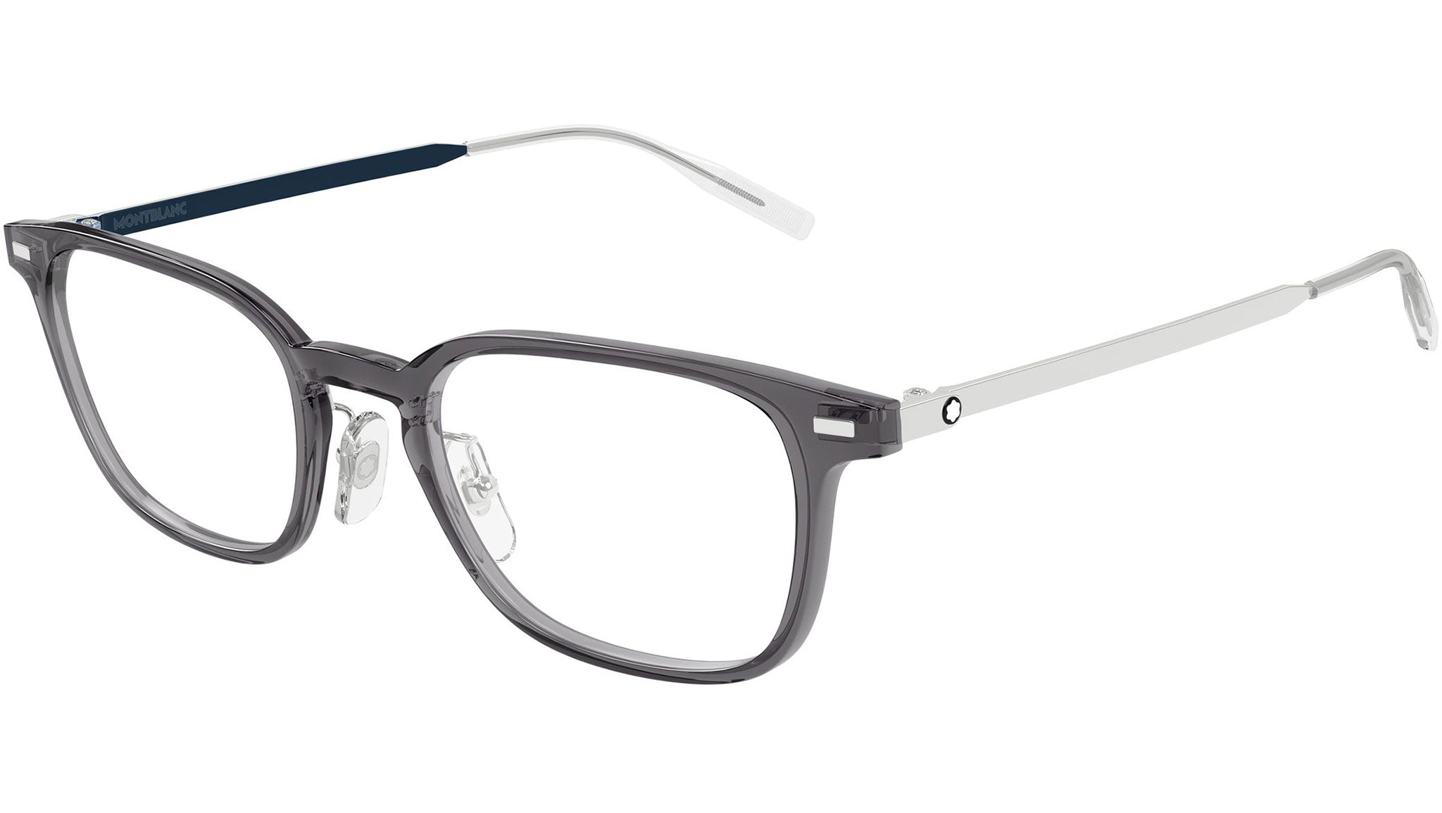 Occhiali da vista Montblanc MB0467OL uomo con montatura rettangolare in inietatto grigio trasparente lucido e lenti demo. Linea: Snowcap. Codice modello: MB0467OL. Codice colore 57 mm: 016. 54 mm: 012. Made in Japan. Rivenditore autorizzato Montblanc online. Gli occhiali vengono consegnati con custodia e accessori originali e sono coperti dalla garanzia ufficiale di 12 mesi del produttore.