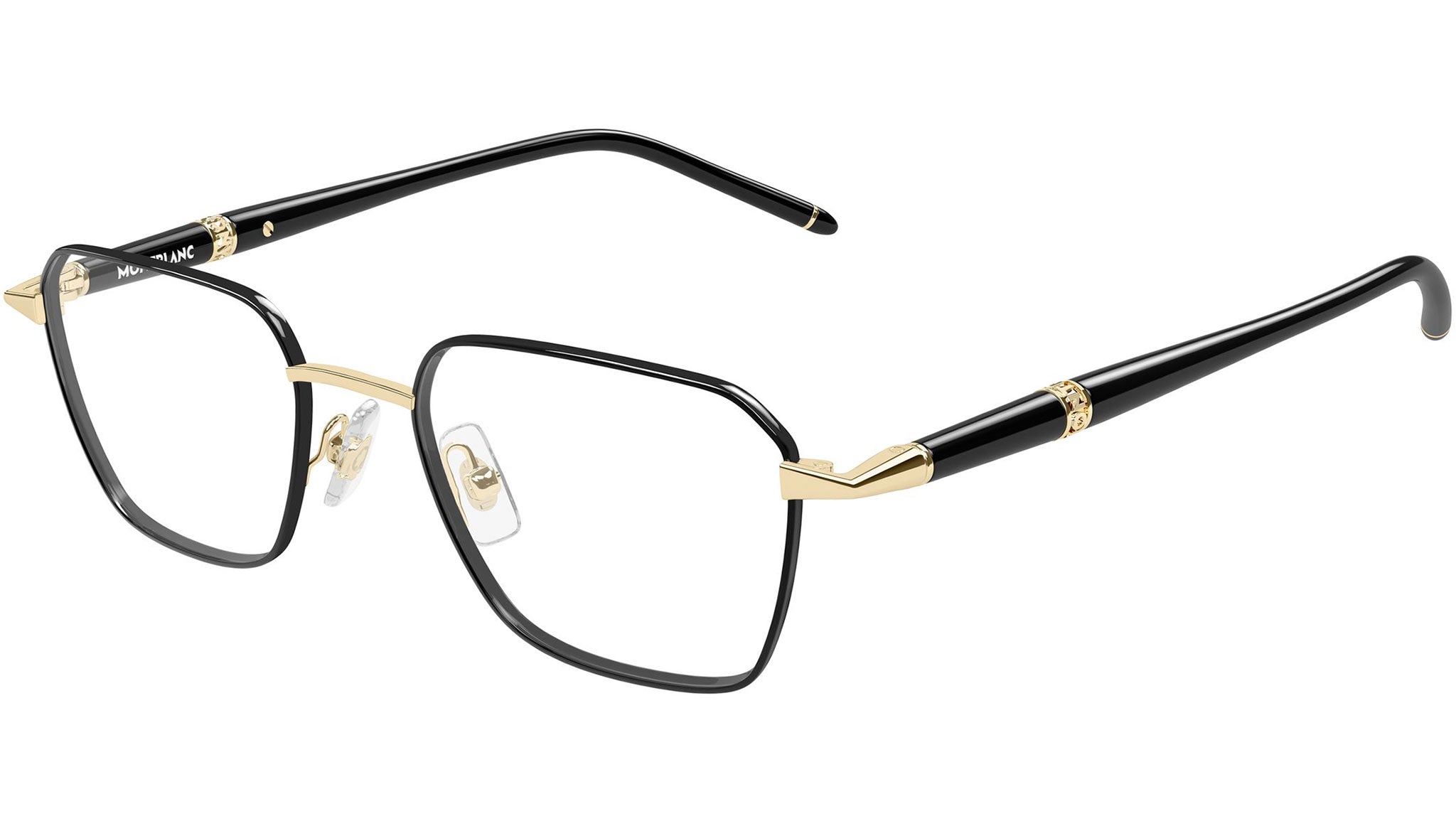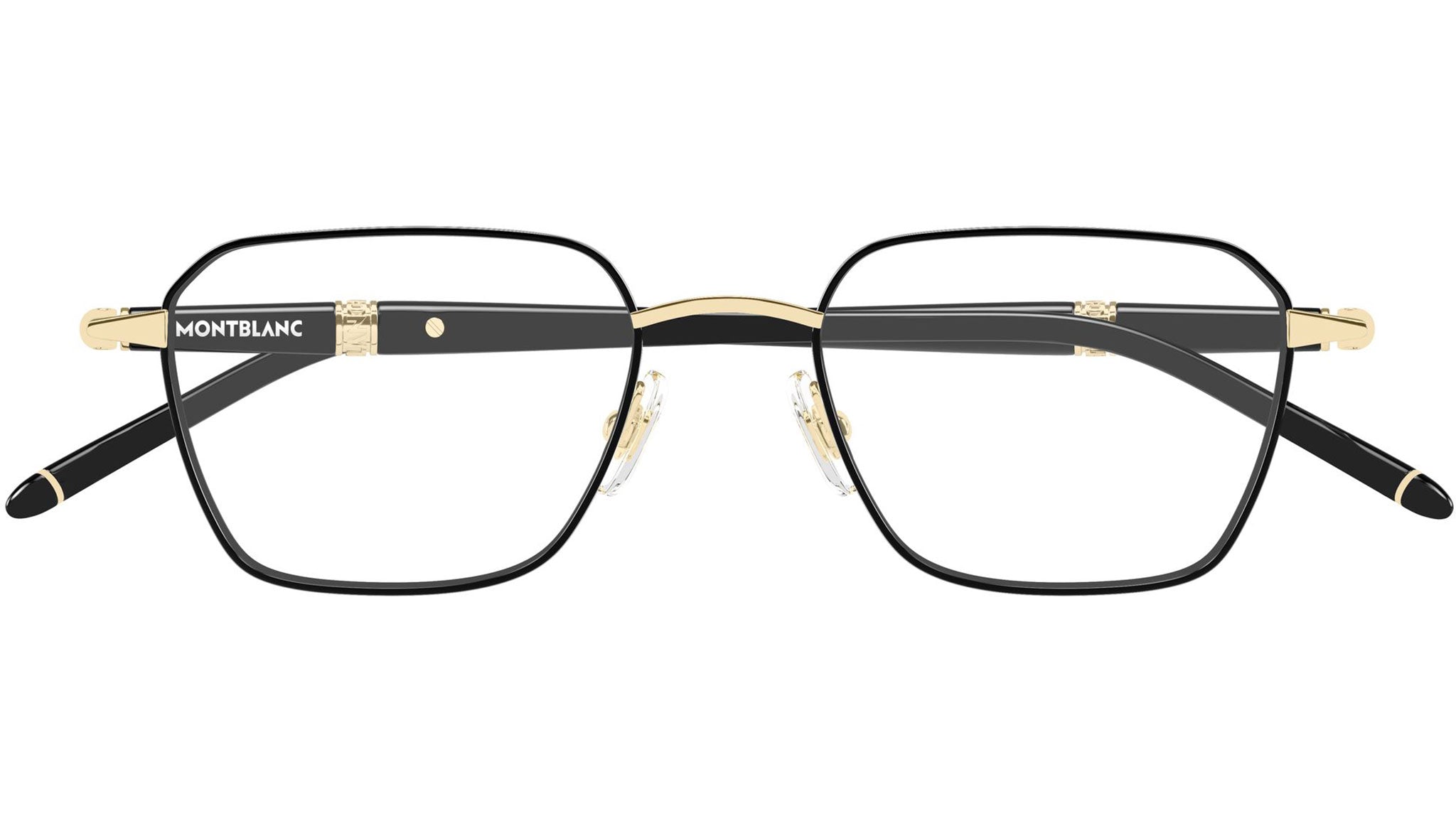 Occhiali da vista Montblanc MB0485O 001 uomo con montatura rettangolare in metallo oro chiaro lucido / nero lucido e lenti demo. Linea: Meisterstück. Codice modello: MB0485O. Codice colore: 001. Made in Japan. Rivenditore autorizzato Montblanc online. Gli occhiali vengono consegnati con custodia e accessori originali e sono coperti dalla garanzia ufficiale di 12 mesi del produttore.