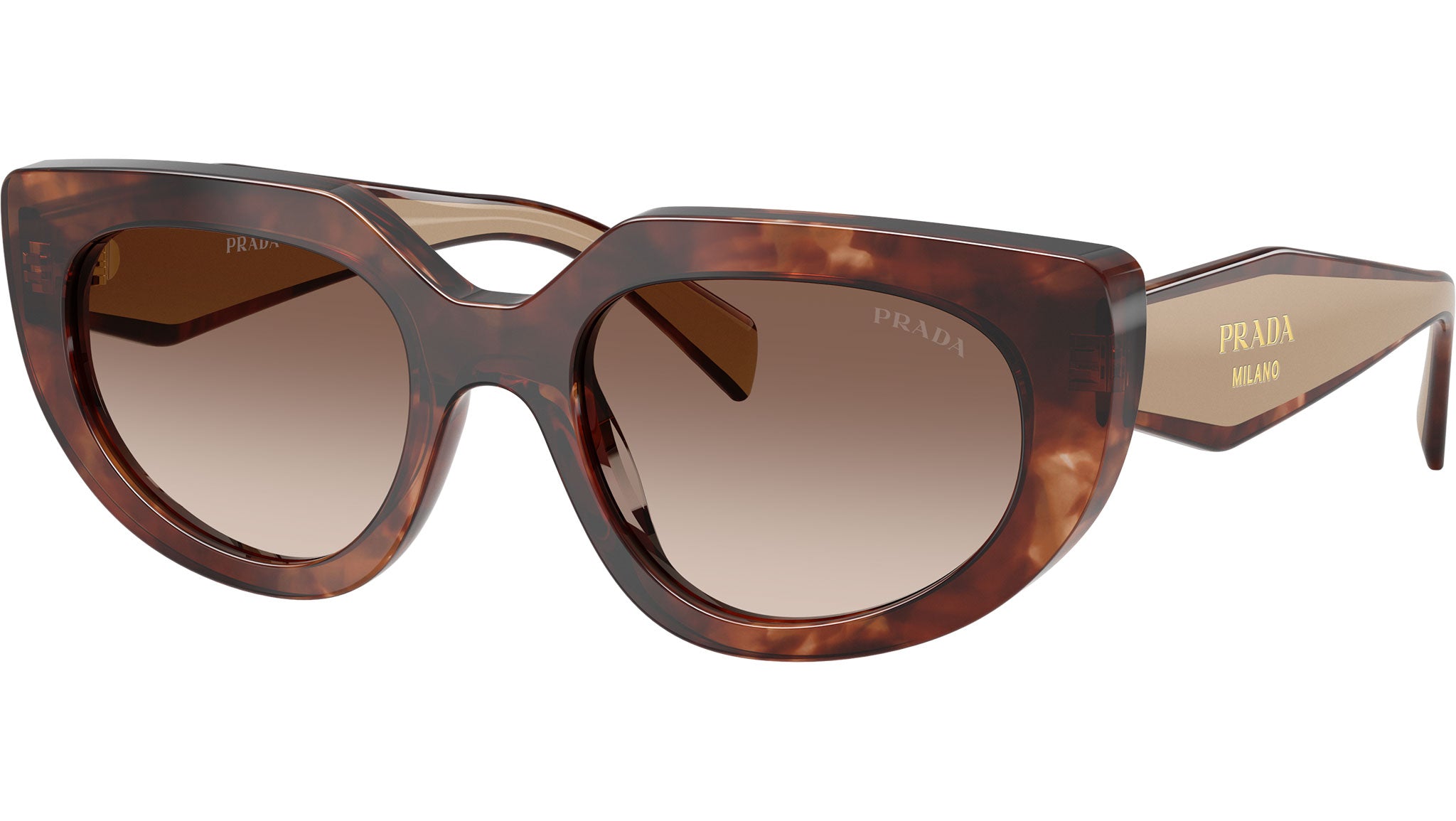 Occhiali da sole Prada PR D02S 00K10S donna con montatura ovale in acetato tartaruga caramello e lenti in bio poliammide color gradiente marrone. Vestibilità a ponte alto. Linea: Design. Codice modello: PRD02S. Codice colore: 00K10S. Made in Italy. Rivenditore autorizzato Prada online. Gli occhiali vengono consegnati con custodia e accessori originali e sono coperti dalla garanzia ufficiale di 12 mesi del produttore.