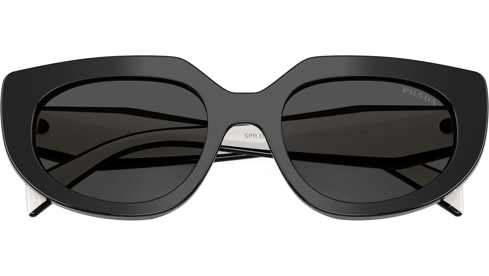 Occhiali da sole Prada PR D02S 20G08Z donna con montatura ovale in acetato nero e lenti in bio poliammide color grigio scuro. Vestibilità a ponte alto. Linea: Design. Codice modello: PRD02S. Codice colore: 20G08Z. Made in Italy. Rivenditore autorizzato Prada online. Gli occhiali vengono consegnati con custodia e accessori originali e sono coperti dalla garanzia ufficiale di 12 mesi del produttore.