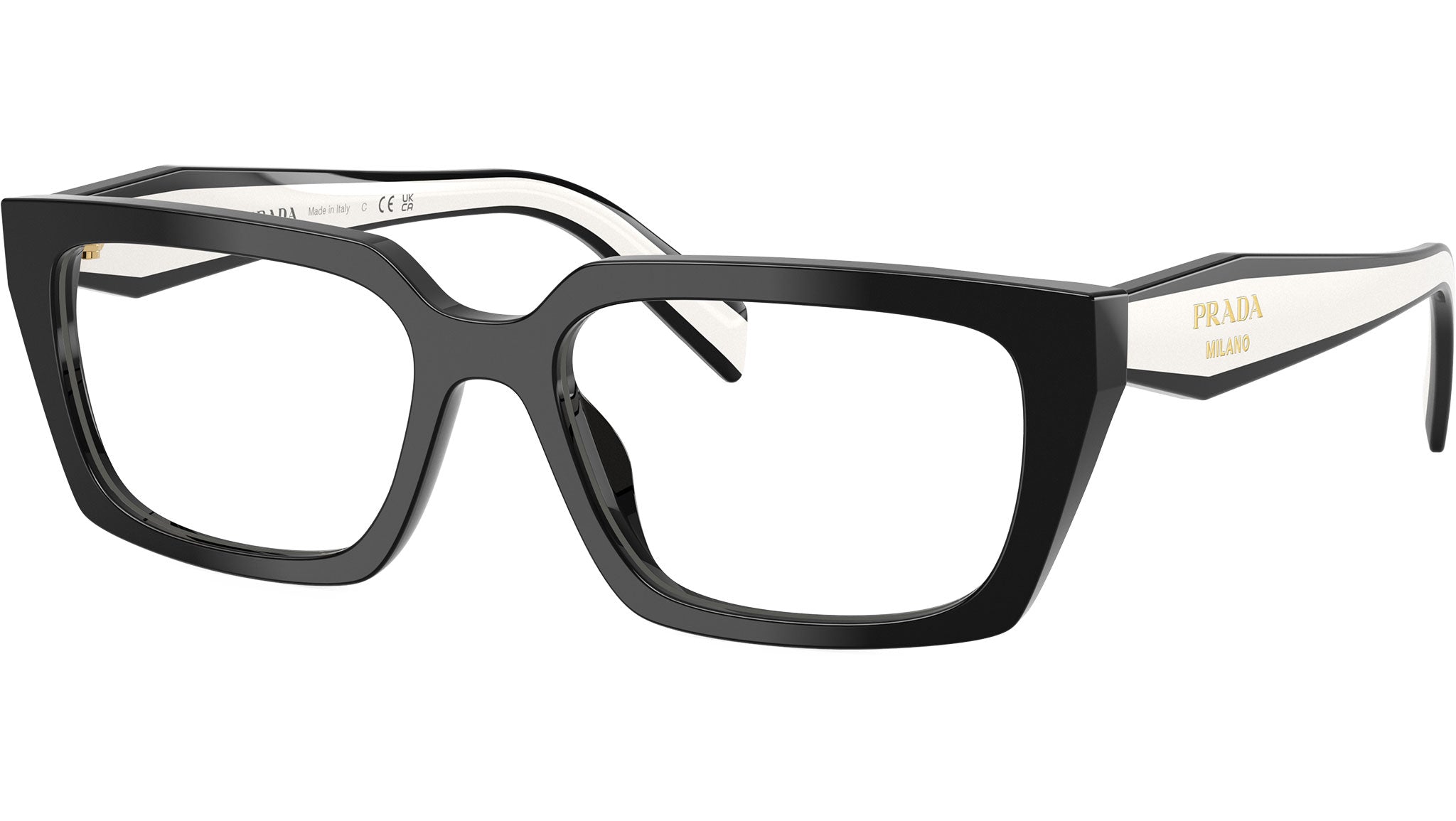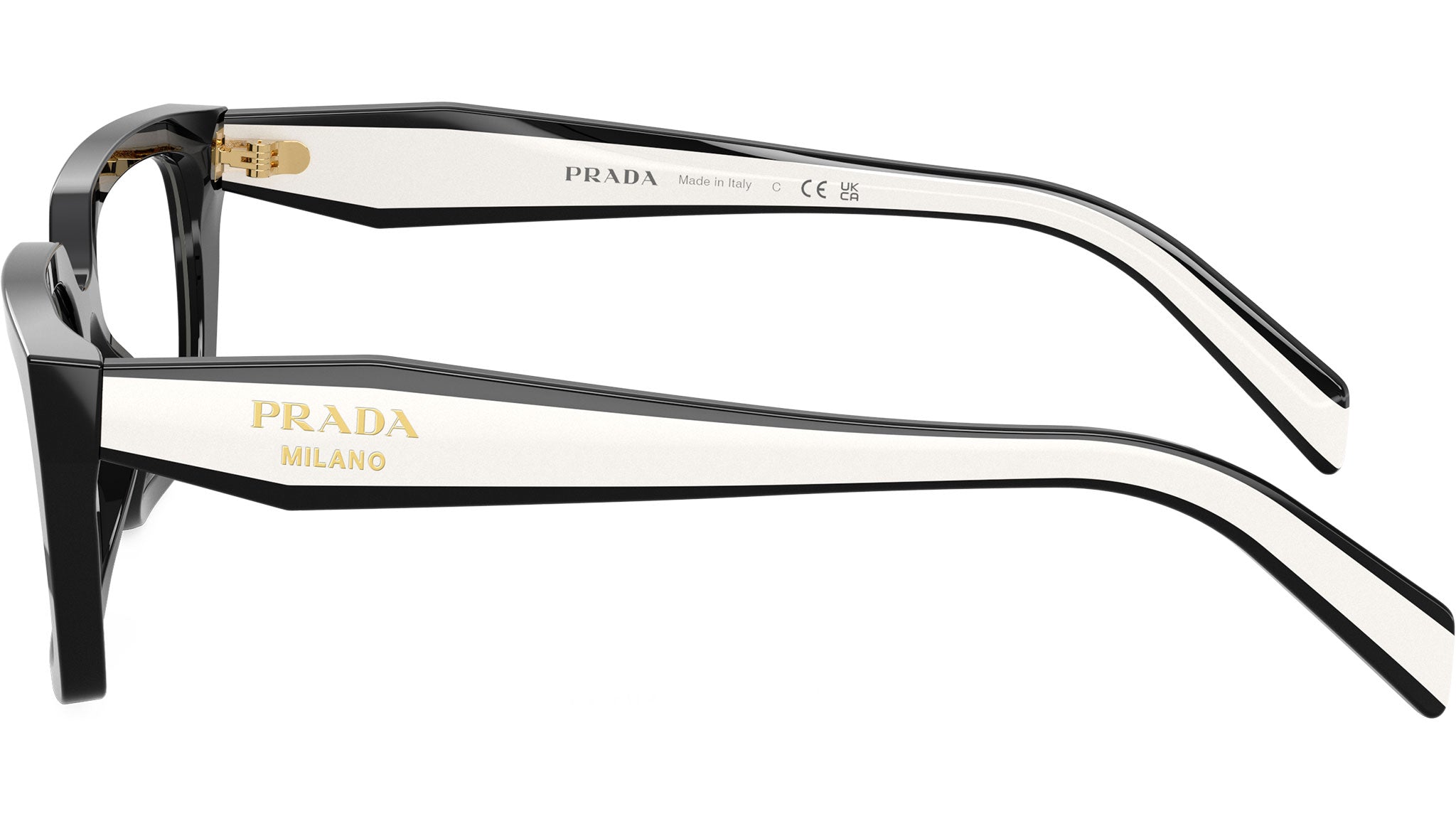 Occhiali da vista Prada PR D05V 20G1O1 donna con montatura rettangolare in acetato nero e lenti demo. Vestibilità a ponte alto. Linea: Design. Codice modello: PRD05V. Codice colore: 20G1O1. Made in Italy. Rivenditore autorizzato Prada online. Gli occhiali vengono consegnati con custodia e accessori originali e sono coperti dalla garanzia ufficiale di 12 mesi del produttore.