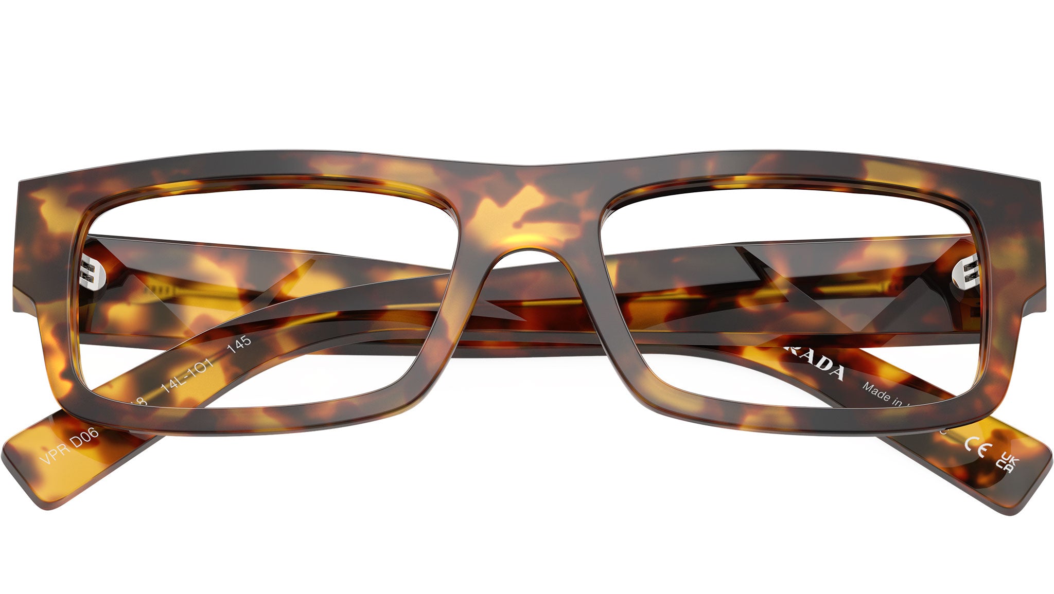 Occhiali da vista Prada PR D06V 14L1O1 uomo con montatura rettangolare in acetato avana miele e lenti demo. Vestibilità a ponte alto. Linea: Design. Codice modello: PRD06V. Codice colore: 14L1O1. Made in Italy. Rivenditore autorizzato Prada online. Gli occhiali vengono consegnati con custodia e accessori originali e sono coperti dalla garanzia ufficiale di 12 mesi del produttore.