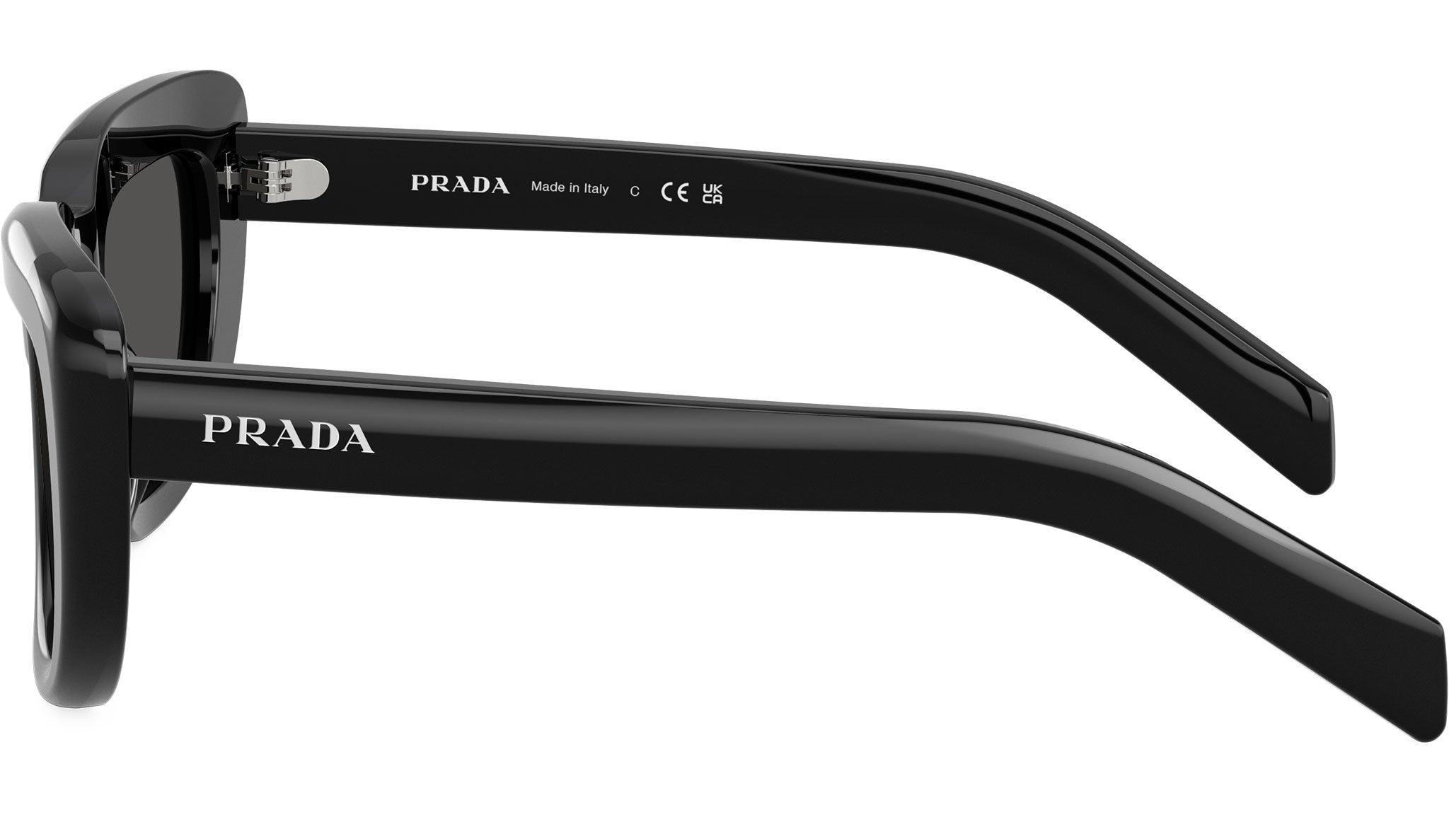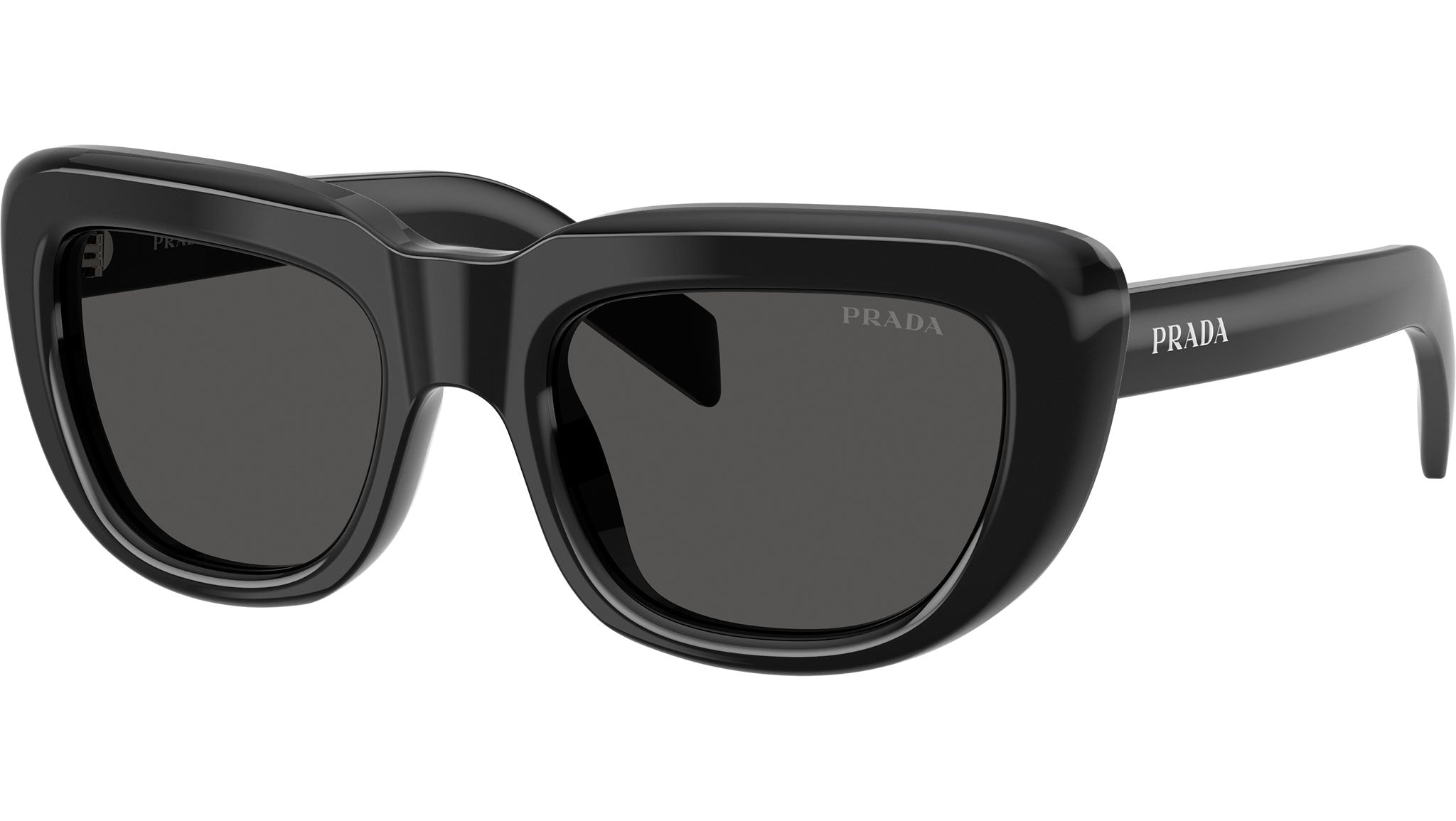 Occhiali da sole Prada PR D07S 16K08Z donna con montatura rettangolare in acetato nero e lenti in bio poliammide color grigio scuro. Vestibilità a ponte alto. Linea: Signature. Codice modello: PRD07S. Codice colore: 16K08Z. Made in Italy. Rivenditore autorizzato Prada online. Gli occhiali vengono consegnati con custodia e accessori originali e sono coperti dalla garanzia ufficiale di 12 mesi del produttore.