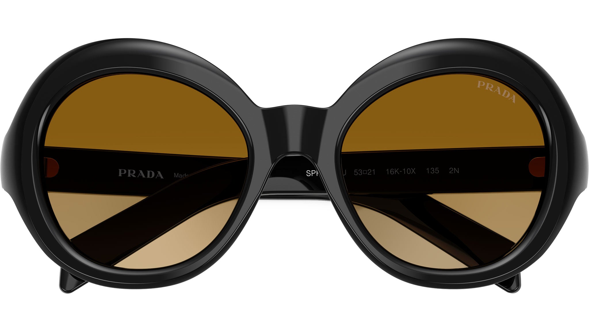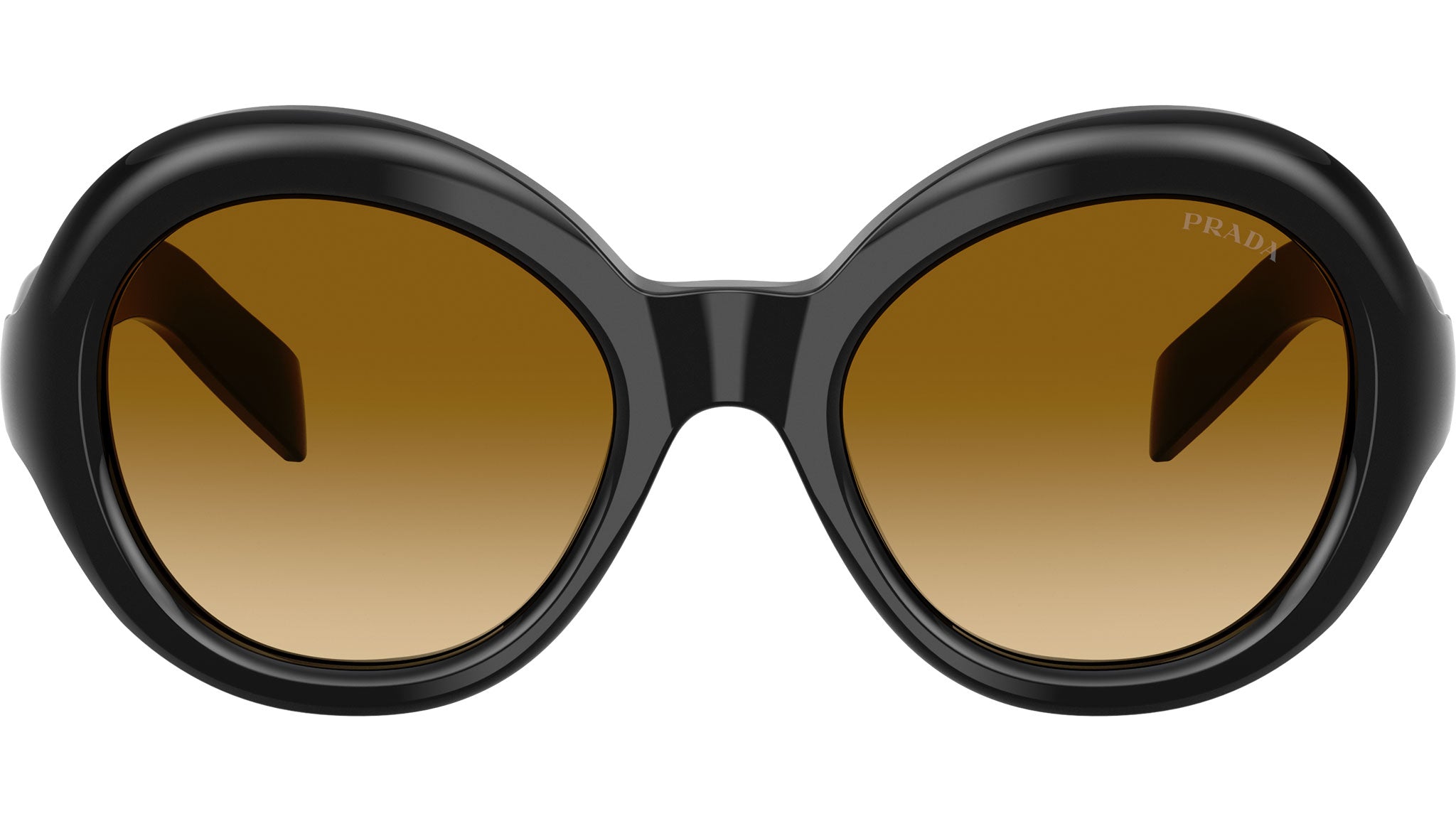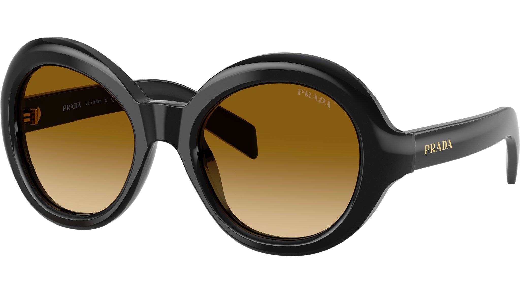 Occhiali da sole Prada PR D08SU 16K10X donna con montatura rotonda in acetato nero e lenti in bio poliammide color giallo sfumato marrone chiaro. Vestibilità a ponte alto. Linea: Signature. Codice modello: PRD08SU. Codice colore: 16K10X. Made in Italy. Rivenditore autorizzato Prada online. Gli occhiali vengono consegnati con custodia e accessori originali e sono coperti dalla garanzia ufficiale di 12 mesi del produttore.