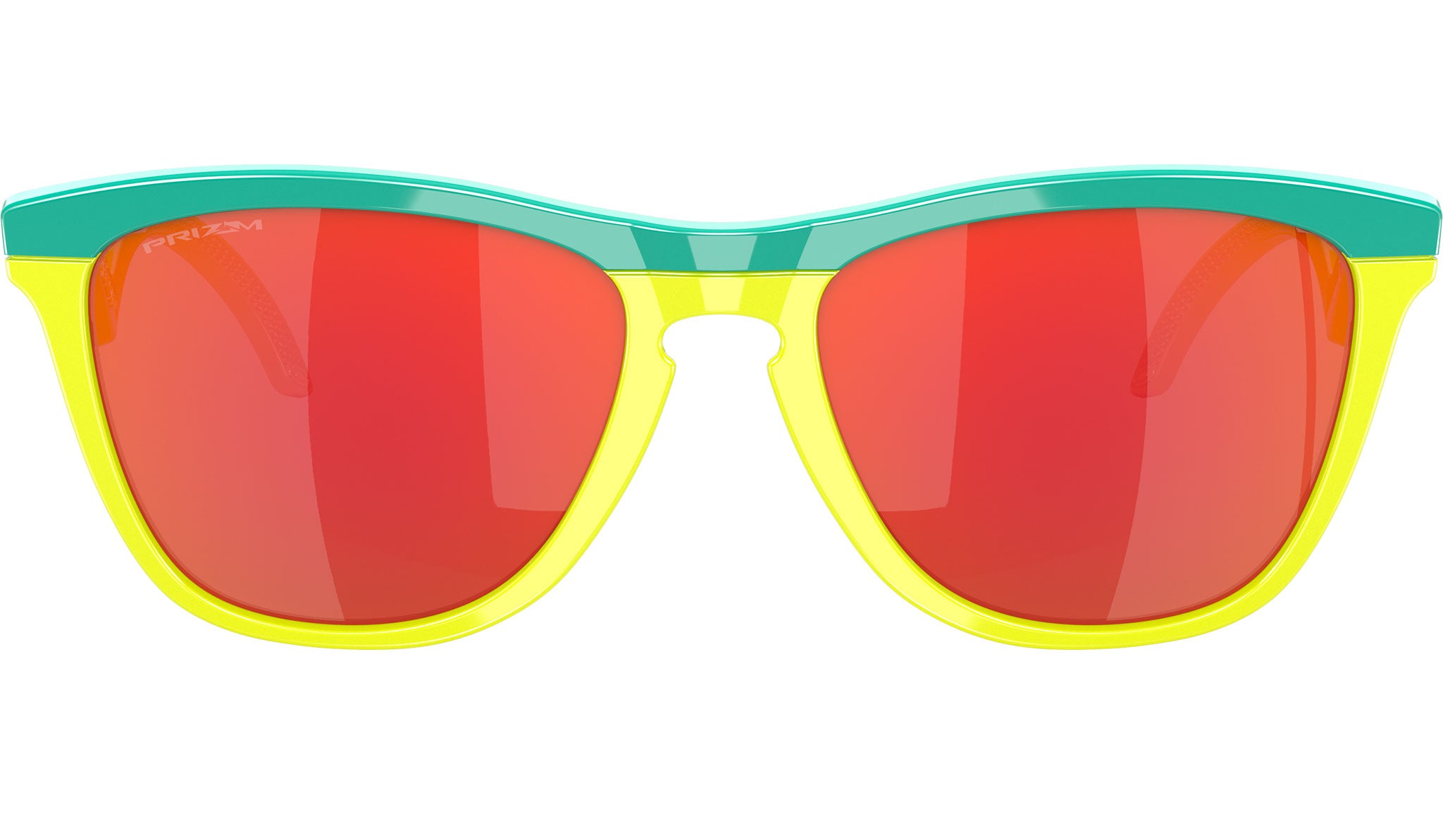 Occhiali da sole Oakley Frogskins Hybrid modello OO9289 codice colore 02 celeste / giallo pallina da tennis con lenti rubino prizm.