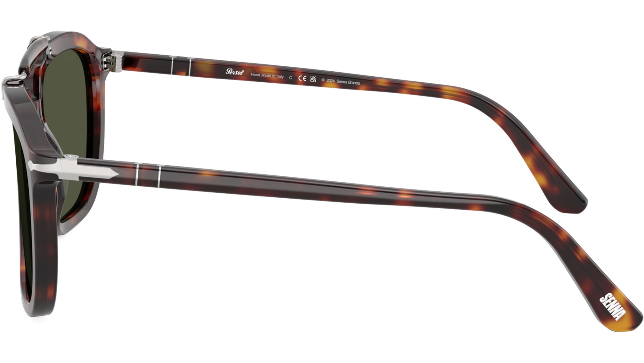 La collezione Persol Senna Series celebra l’eredità di Ayrton Senna con una reinterpretazione moderna del suo stile iconico. Ispirati a un modello d’archivio indossato da Senna e realizzati in collaborazione con Netflix per la nuova serie dedicata al campione di Formula 1, sono occhiali da sole che combinano eleganza, carisma e design senza tempo. La silhouette a goccia, proposta in una ricca palette di colori, rende omaggio all’epoca d’oro delle corse, mentre dettagli autentici come la barra antisudore e i terminali personalizzati con i loghi Persol e Senna Series evocano lo spirito audace della leggenda. Ogni modello è accompagnato da una custodia esclusiva, che richiama l’eleganza delle auto da corsa e l’inconfondibile stile del campione. Occhiali da sole Persol unisex modello PO 0203S full rim in acetato avana con lenti verde base 6. Vestibilità a ponte alto. Linea: Sartoria. Codice brand: 0PO0203S. Codice colore: 24/31. Rivenditore autorizzato online Persol Eyewear. Ogni prodotto Persol viene consegnato con astuccio originale e accessori ed è coperto da garanzia del produttore di 12 mesi.