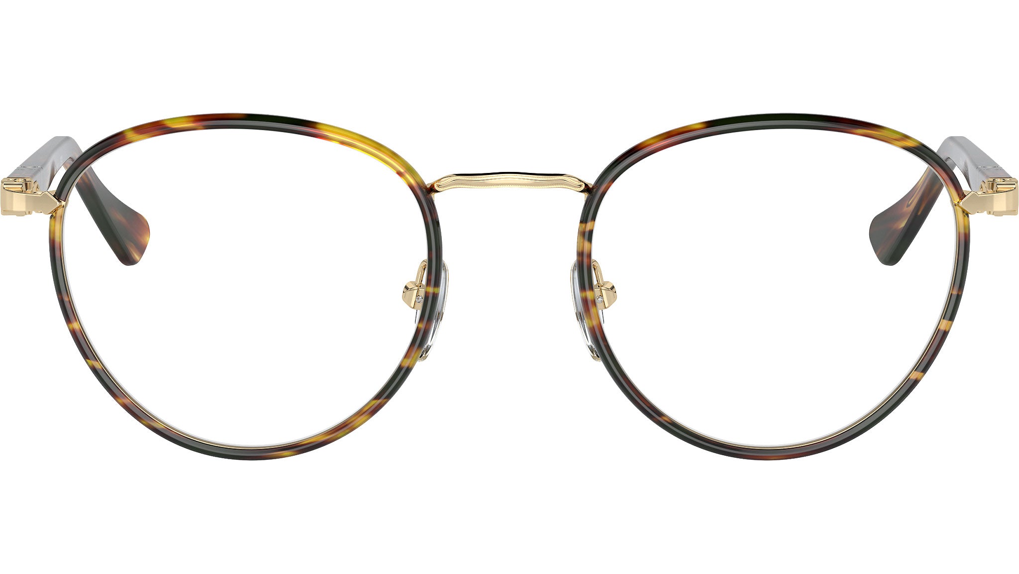 Occhiali da vista Persol modello PO2410VJ codice colore 1098 con montatura full rim in metallo color oro e caffè e lenti demo.