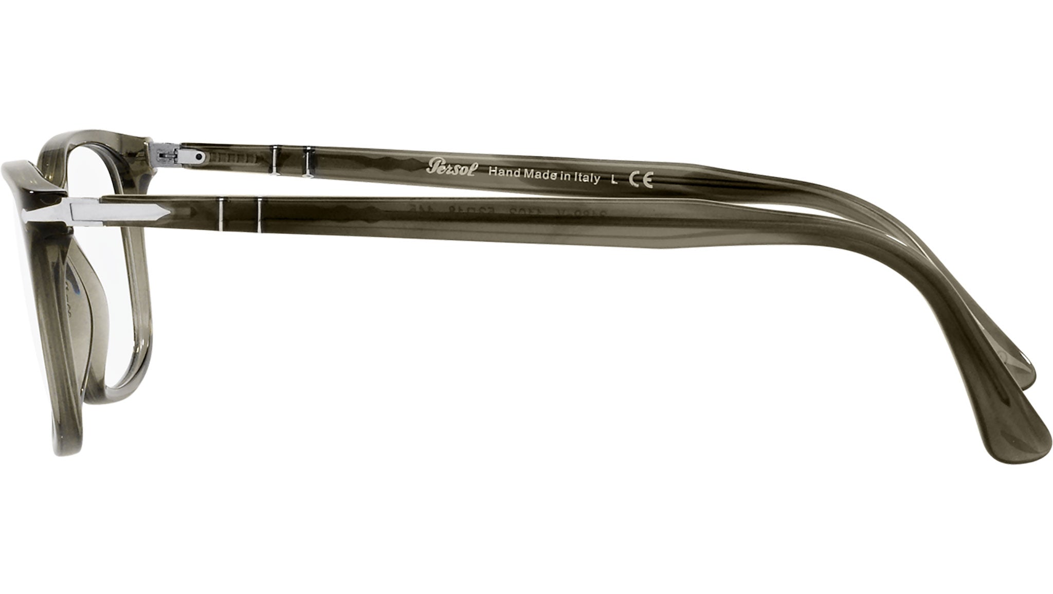 Occhiali da vista Persol modello PO3189V codice colore 1103 con montatura full rim in acetato color grigio trasparente e lenti demo.