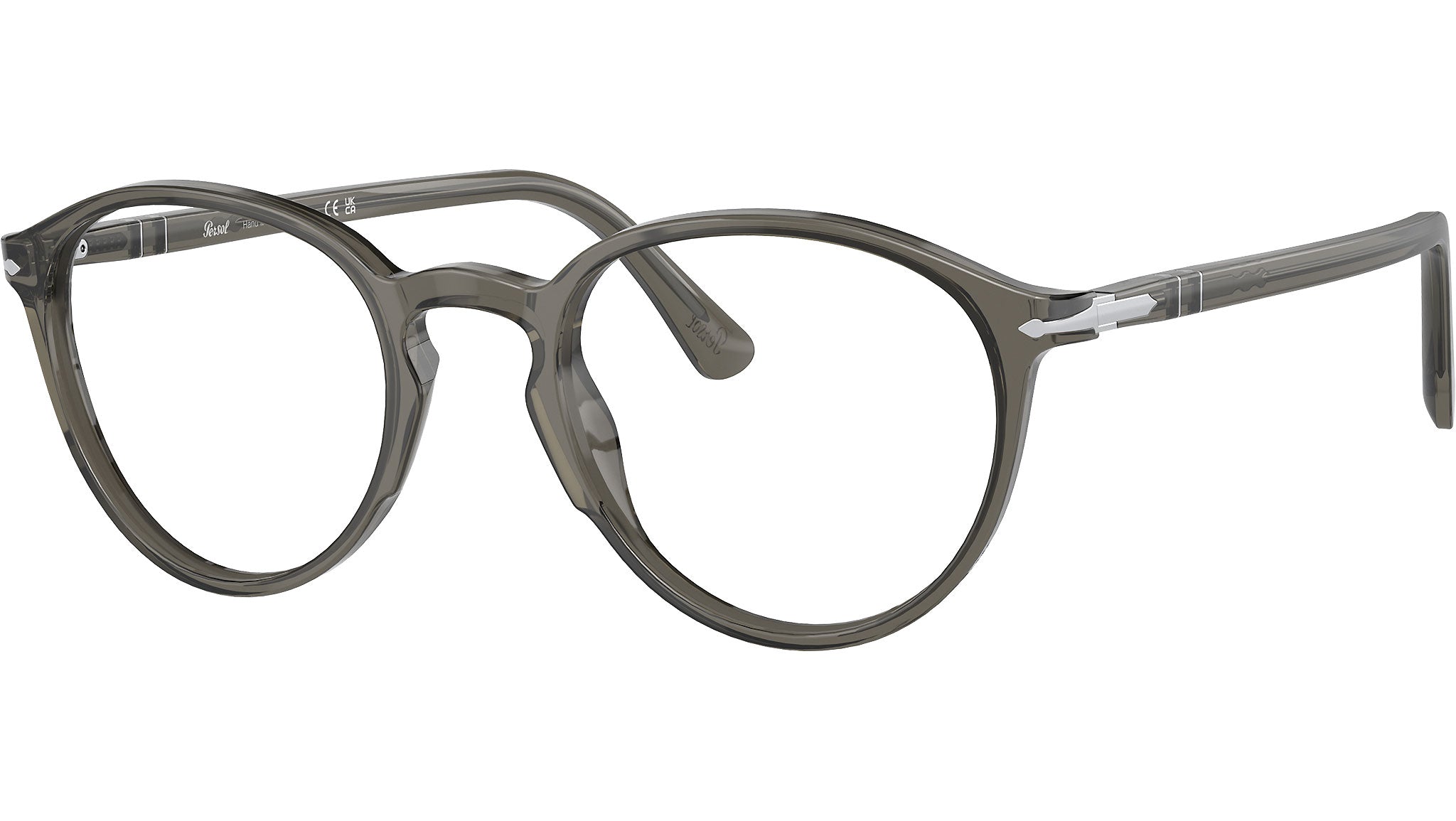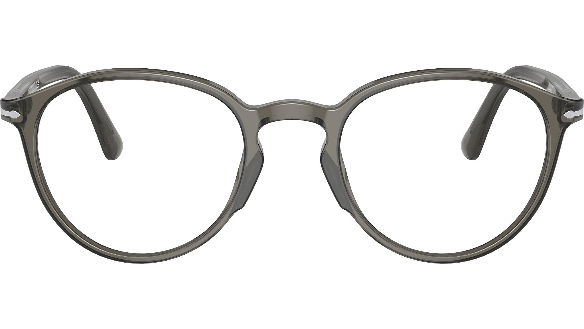 Occhiali da vista Persol modello PO3218V codice colore 1103 con montatura full rim in acetato color fumo opale e lenti demo.