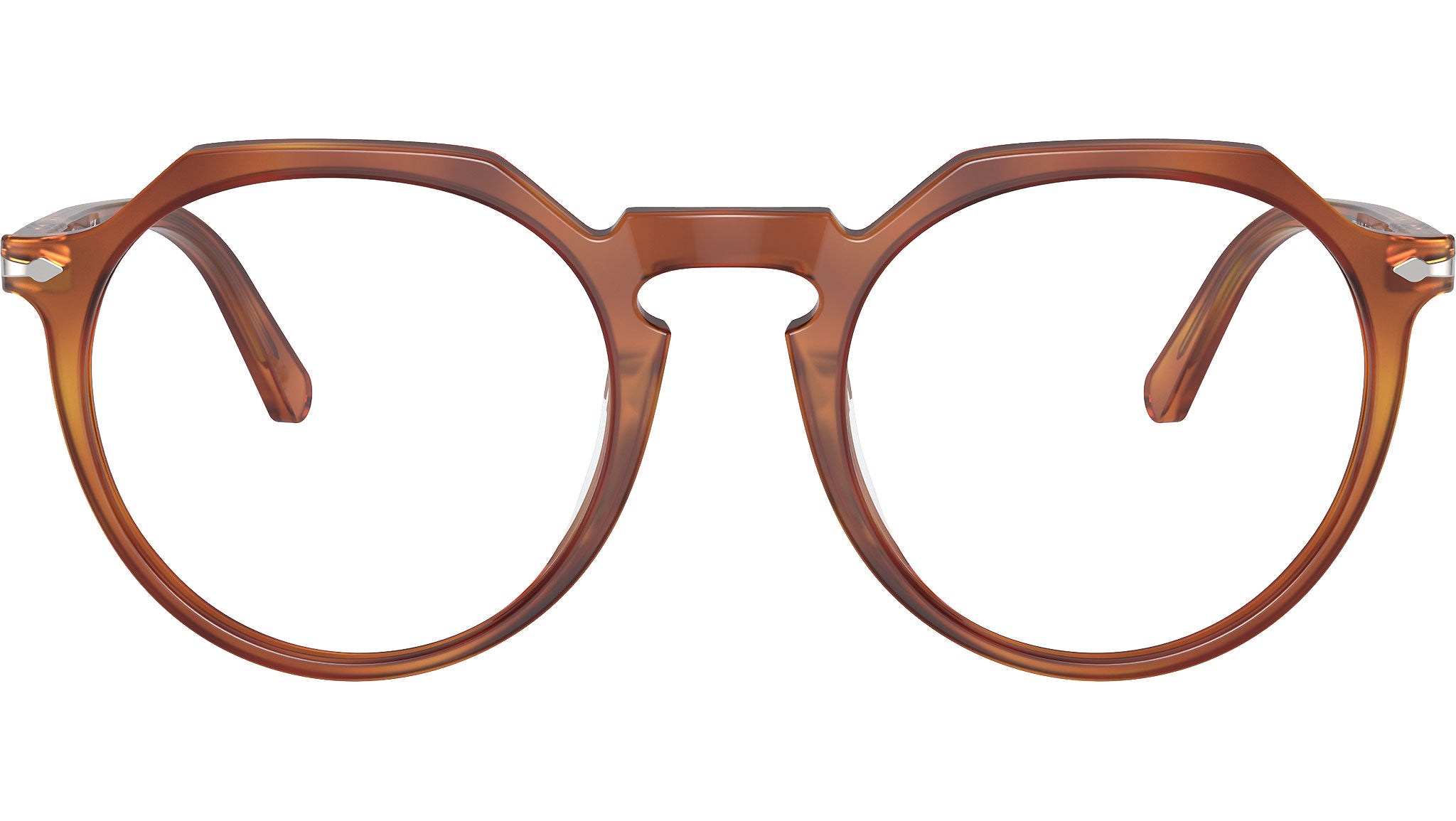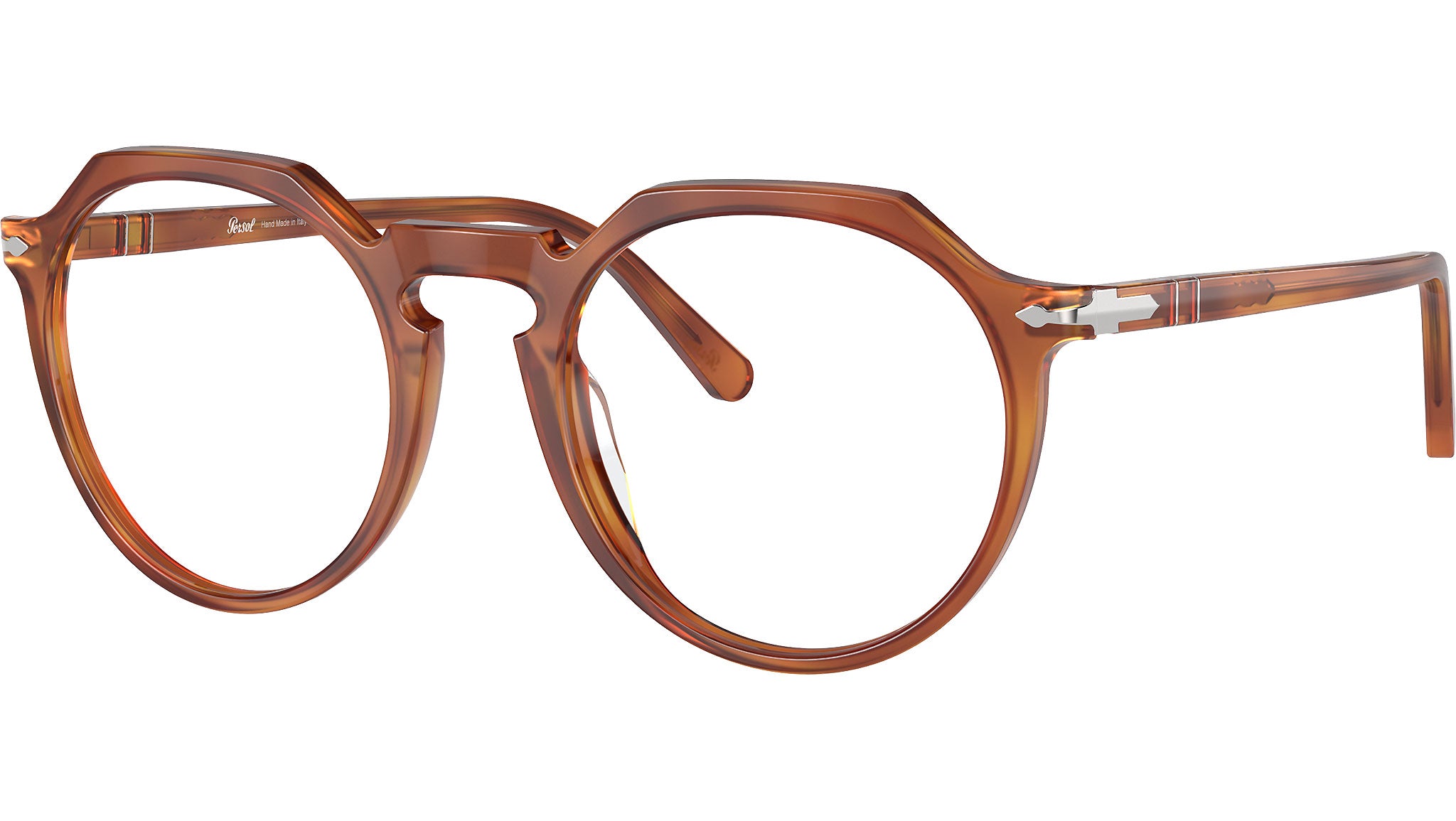 Occhiali da vista Persol modello PO3281V codice colore 96 con montatura full rim in acetato color terra di siena e lenti demo.
