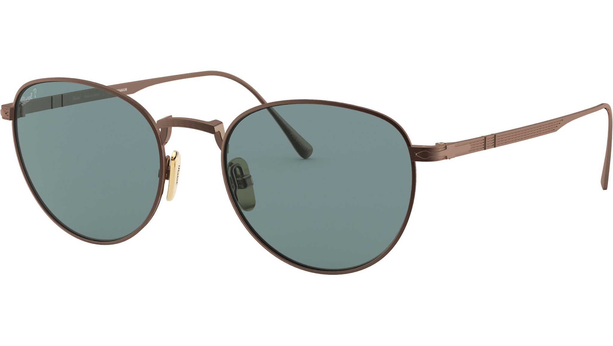 Occhiali da sole Persol modello PO5002ST codice colore 8003P1 con montatura color bronzo full rim titanio e lenti in CR-39 color verde.