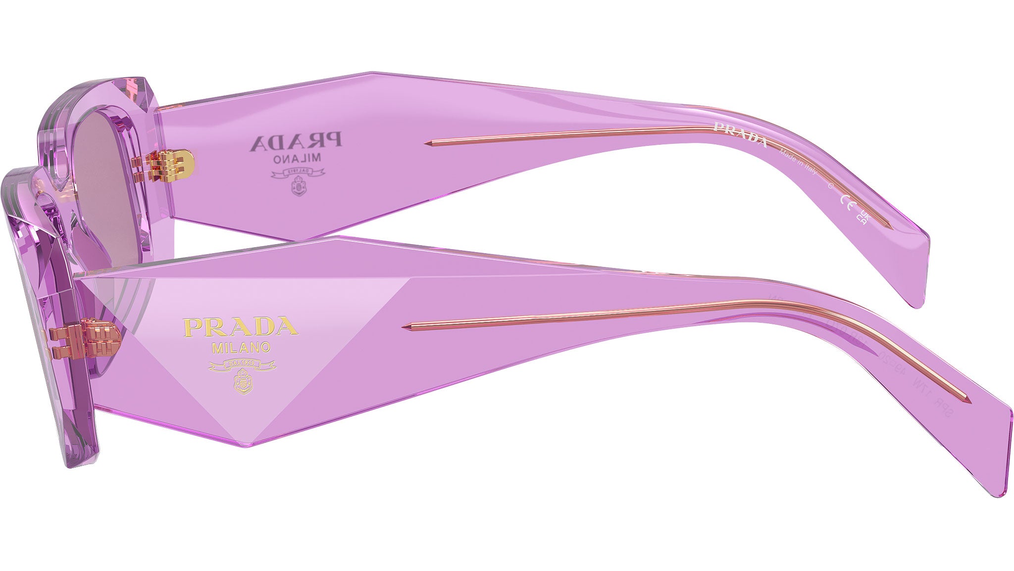 Occhiali da sole Prada PR 17WS 13R07Q donna con montatura rettangolare in acetato ametista trasparente e lenti in poliammide color specchio viola scuro argento. Fit universale. Linea: Catwalk. Codice modello: PR17WS. Codice colore: 13R07Q. Made in Italy. Rivenditore autorizzato Prada online. Gli occhiali vengono consegnati con custodia e accessori originali e sono coperti dalla garanzia ufficiale di 12 mesi del produttore.