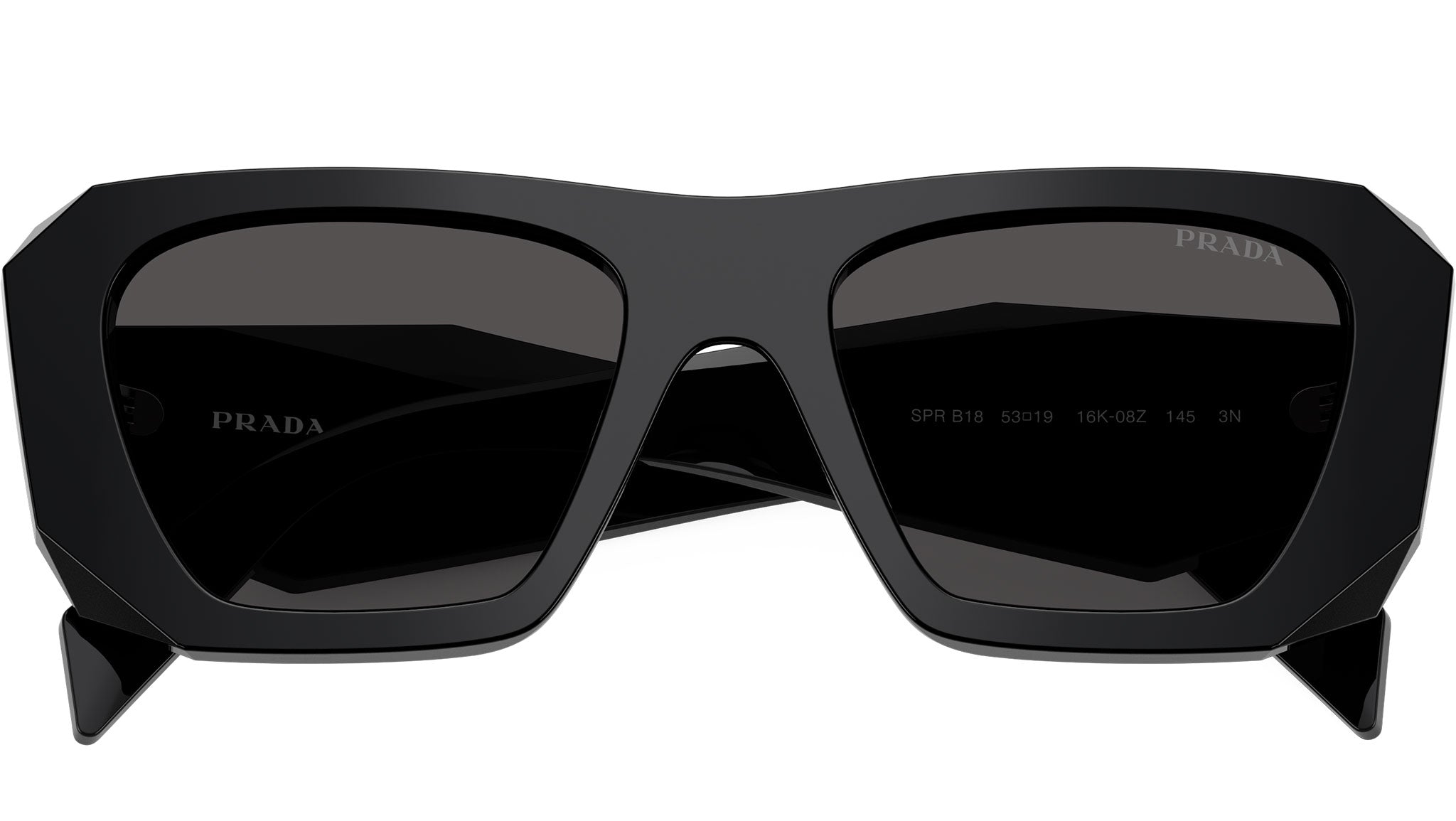 Occhiali da sole Prada PR B18S 16K08Z donna con montatura squadrata in acetato nero e lenti in bio poliammide color grigio scuro. Vestibilità a ponte alto. Linea: Design. Codice modello: PRB18S. Codice colore: 16K08Z. Made in Italy. Rivenditore autorizzato Prada online. Gli occhiali vengono consegnati con custodia e accessori originali e sono coperti dalla garanzia ufficiale di 12 mesi del produttore.