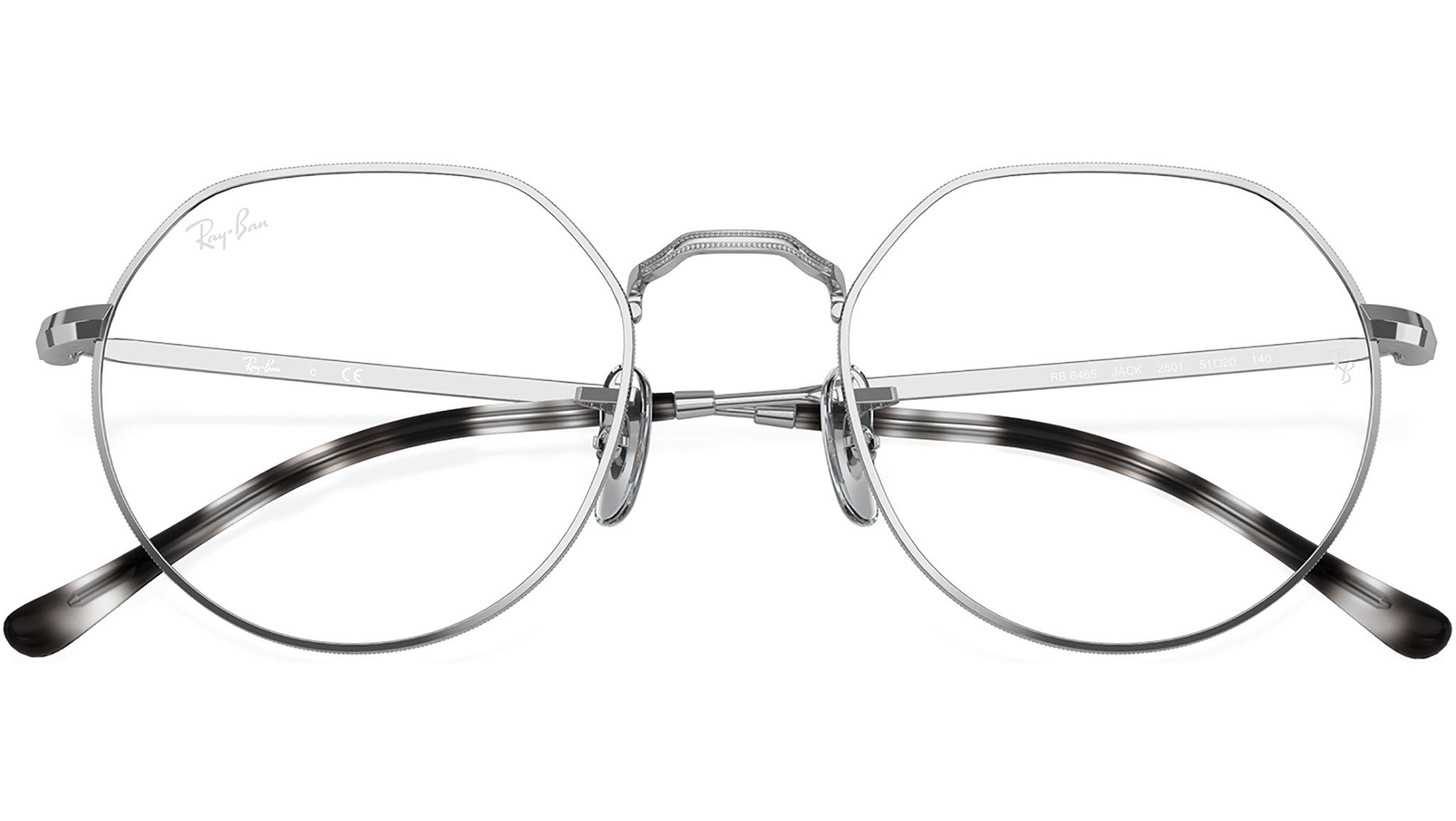 Occhiali da vista Ray-Ban Jack RB6465 2501 unisex con montatura geometrica in metallo argento e lenti demo. Naselli regolabili. Linea: Evolution. Codice modello: 0RX6465. Codice colore: 2501. Rivenditore autorizzato Ray-Ban online. Gli occhiali vengono consegnati con custodia e accessori originali e sono coperti dalla garanzia ufficiale di 12 mesi del produttore.