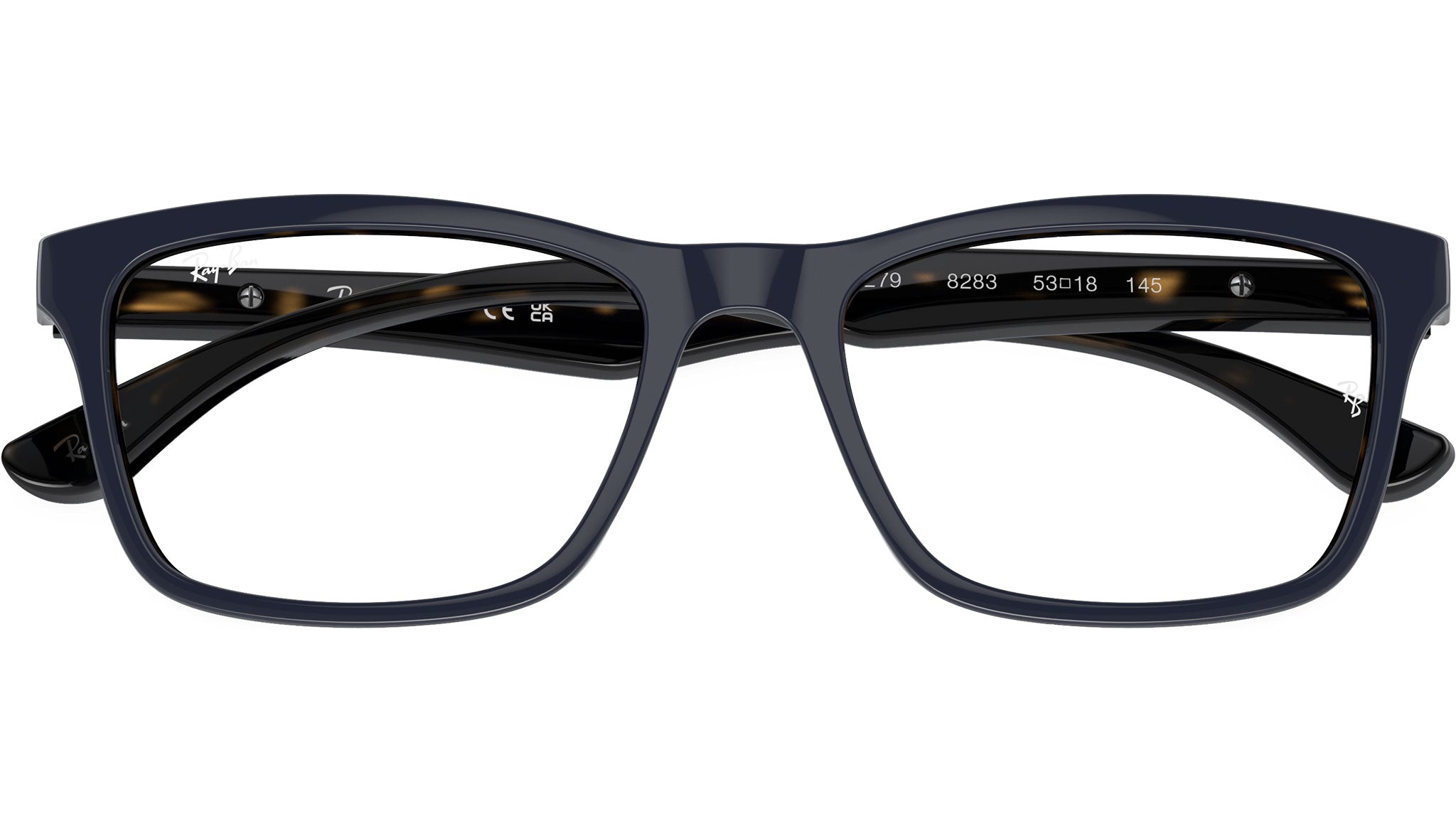 Occhiali da vista Ray-Ban RB5279 Optics RB5279 8283 unisex con montatura squadrata in acetato blu su avana e lenti demo. Vestibilità a ponte alto. Linea: Essentials. Codice modello: 0RX5279. Codice colore: 8283. Rivenditore autorizzato Ray-Ban online. Gli occhiali vengono consegnati con custodia e accessori originali e sono coperti dalla garanzia ufficiale di 12 mesi del produttore.